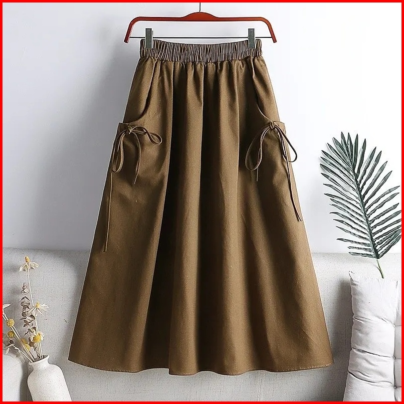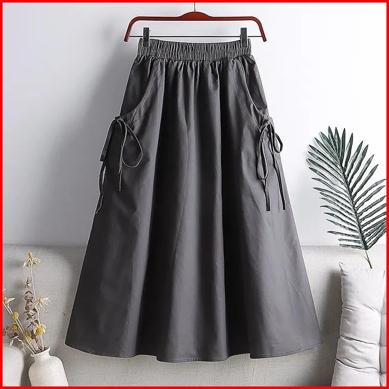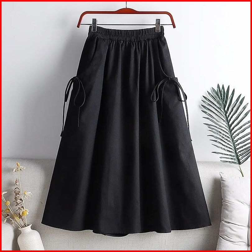 Rok Wanita Kekinian Korean Style Daniela Skirt Bahan Linen Rok Jumbo Panjang Saku Rok Wanita Casual Hitam Putih Mocca Gr