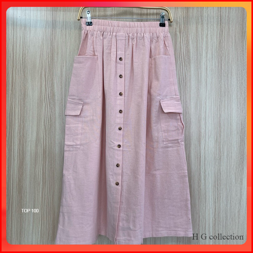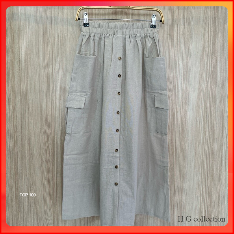 Rok Cargo Panjang Linen Rok Cargo Panjang Wanita