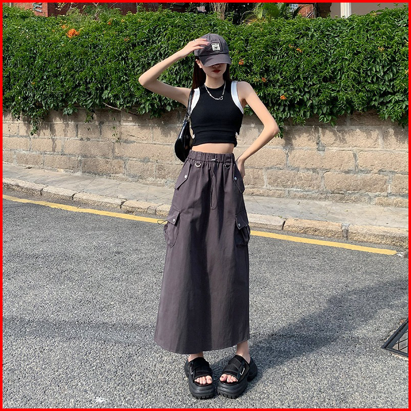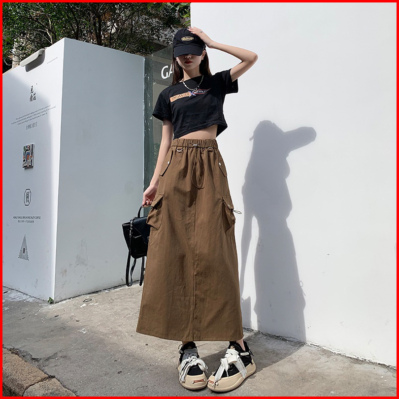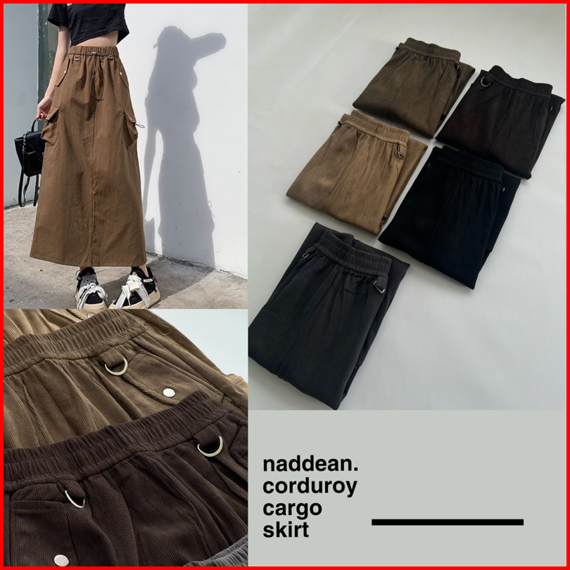 Naddean - Rok Cargo Korduroy Corduroy Cargo Skirt Rok Import Panjang Bahan Korduroi