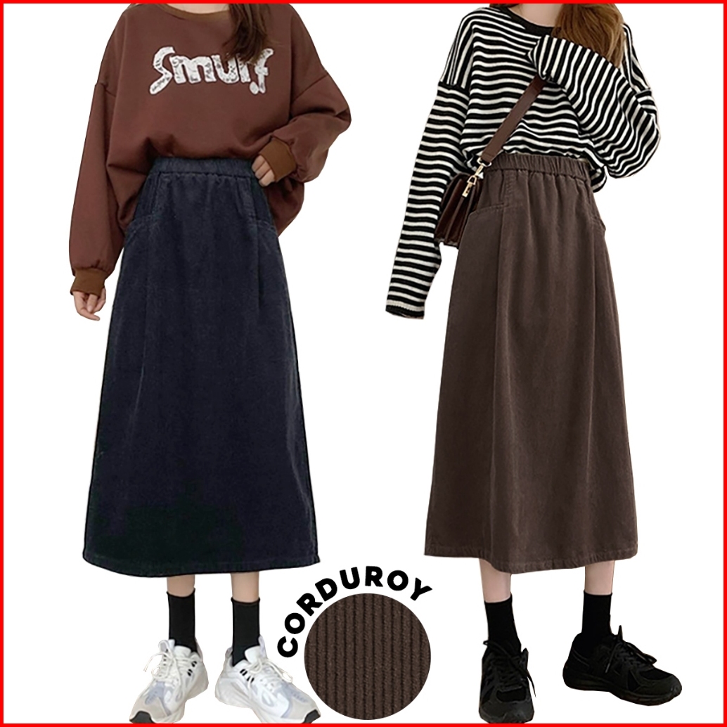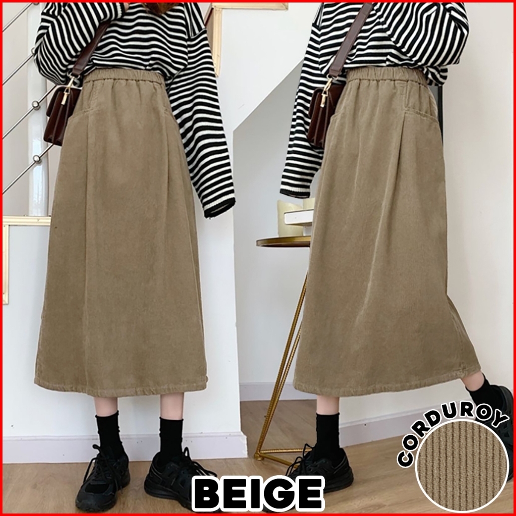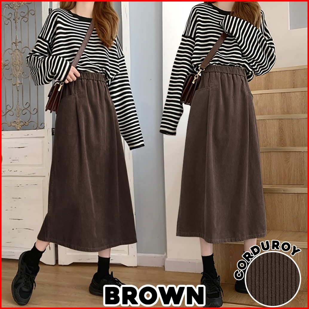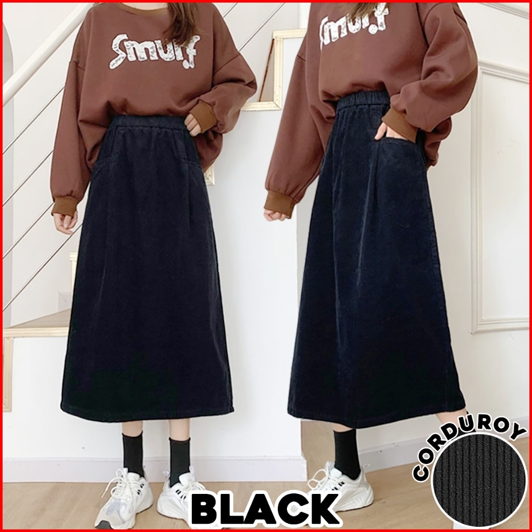 Karakorea 321 Corduroy Velvet Skirt Rok Korean Style Maxi Skirt Rok Panjang Wanita