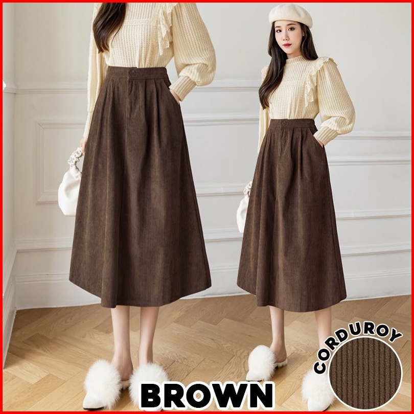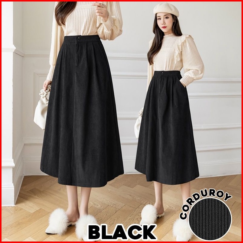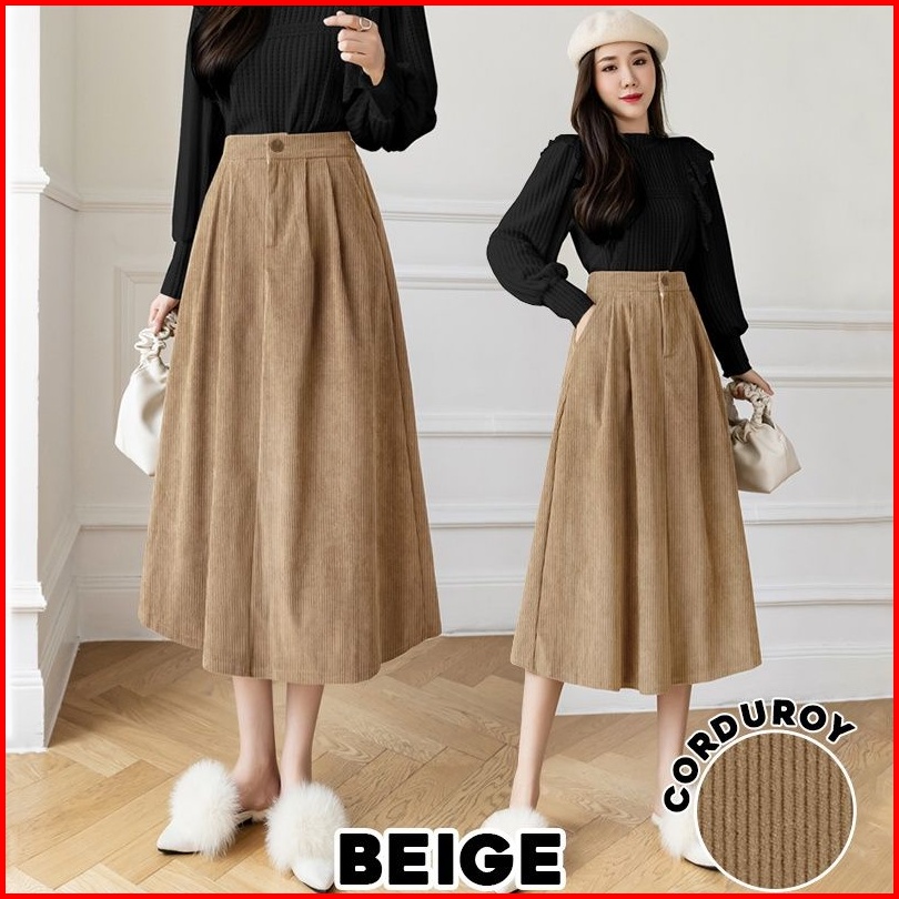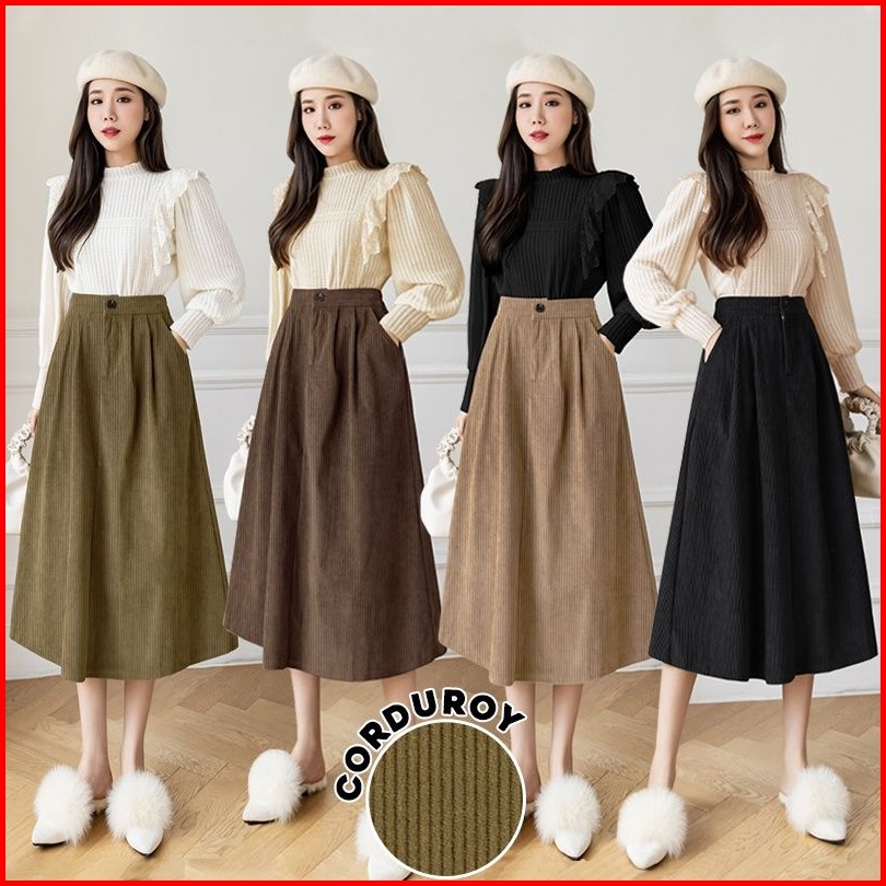 Lovely 319 Corduroy Velvet Skirt Korean Women Skirt Maxi Skirt Premium Skrit Rok Import