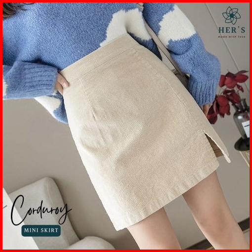 Her S - Xixi Corduroy Skirt - Mini Skirt - Pencil Skirt - Highwaist - Rok Span Mini - Rok Mini - Rok Wanita Rok Korduroy