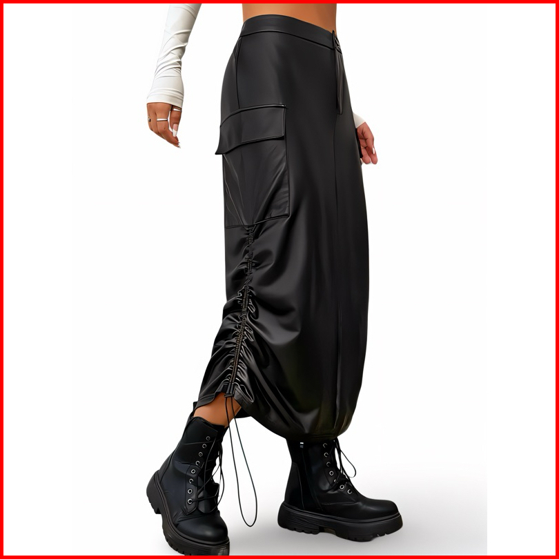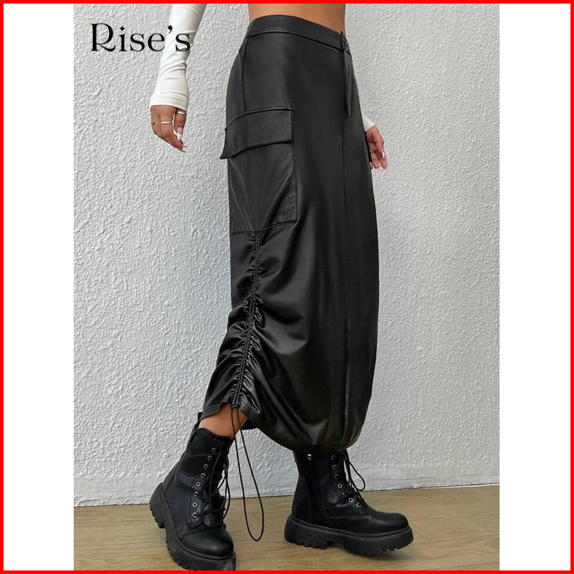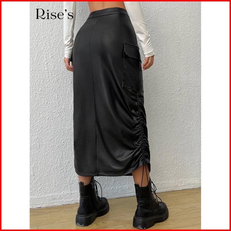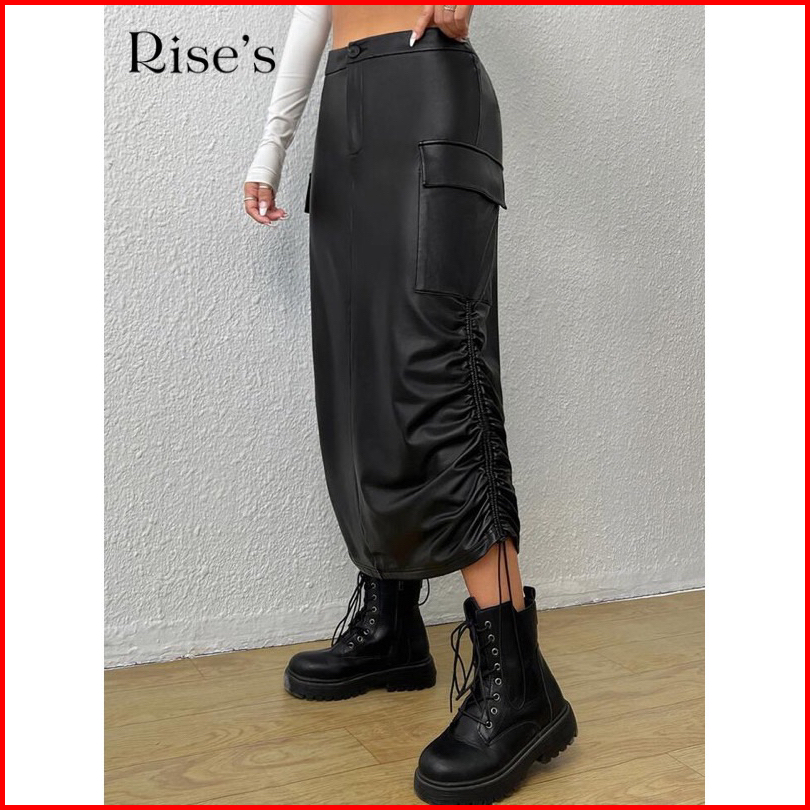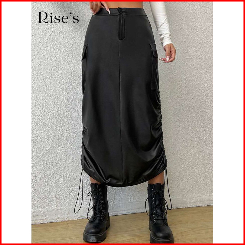 Riseleather.id - Rok Kulit Wanita Panjang Double Serut