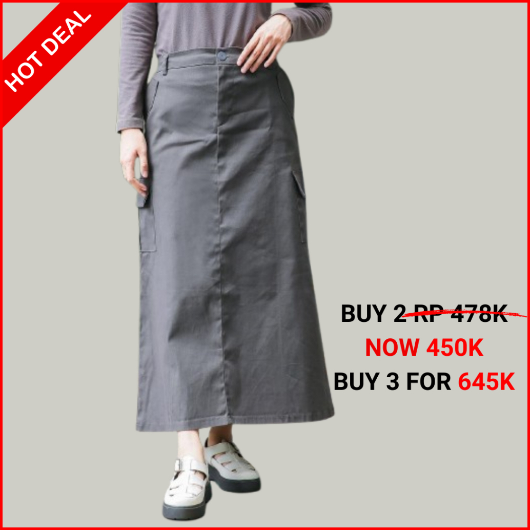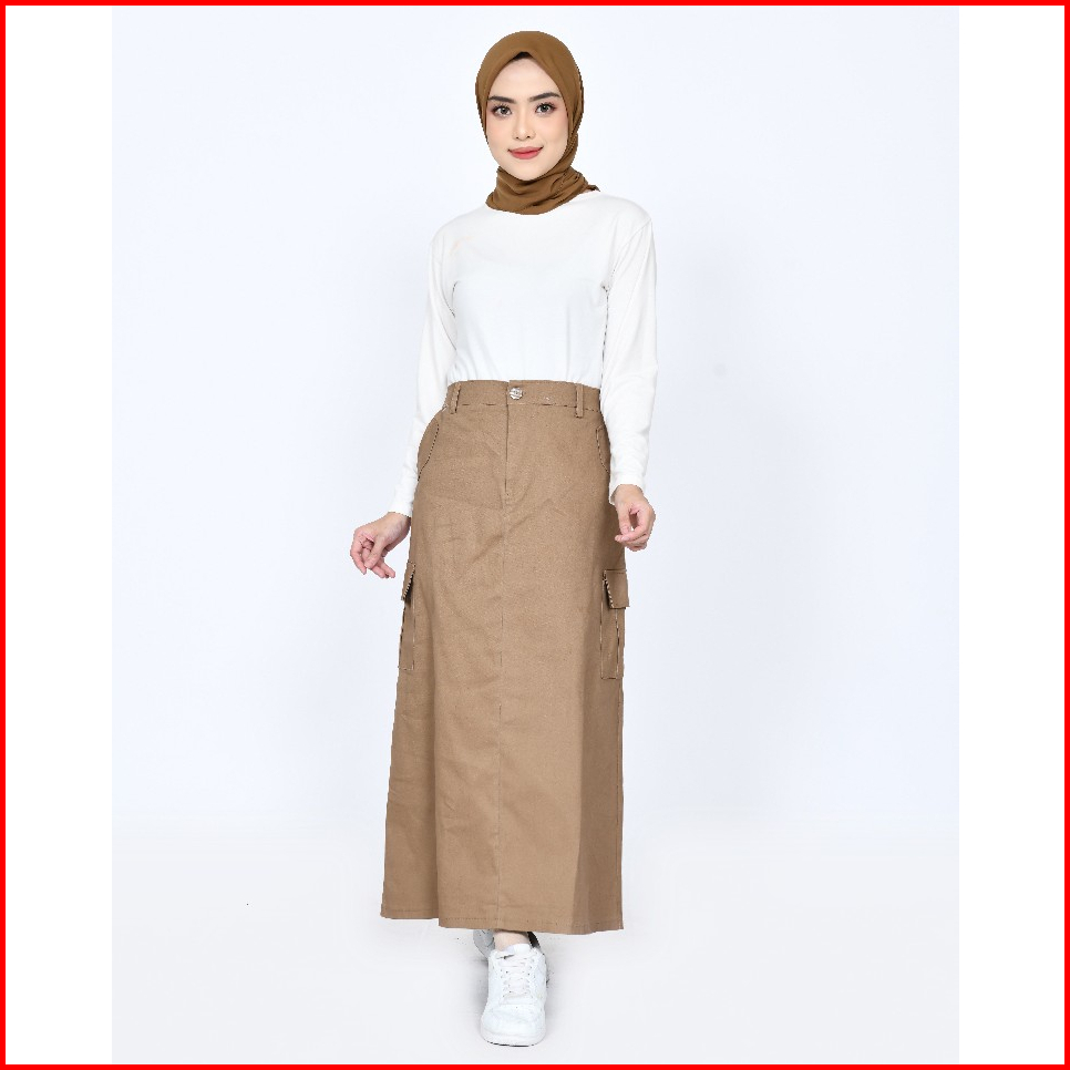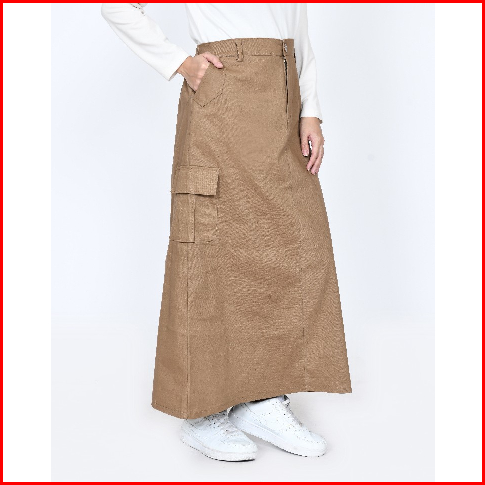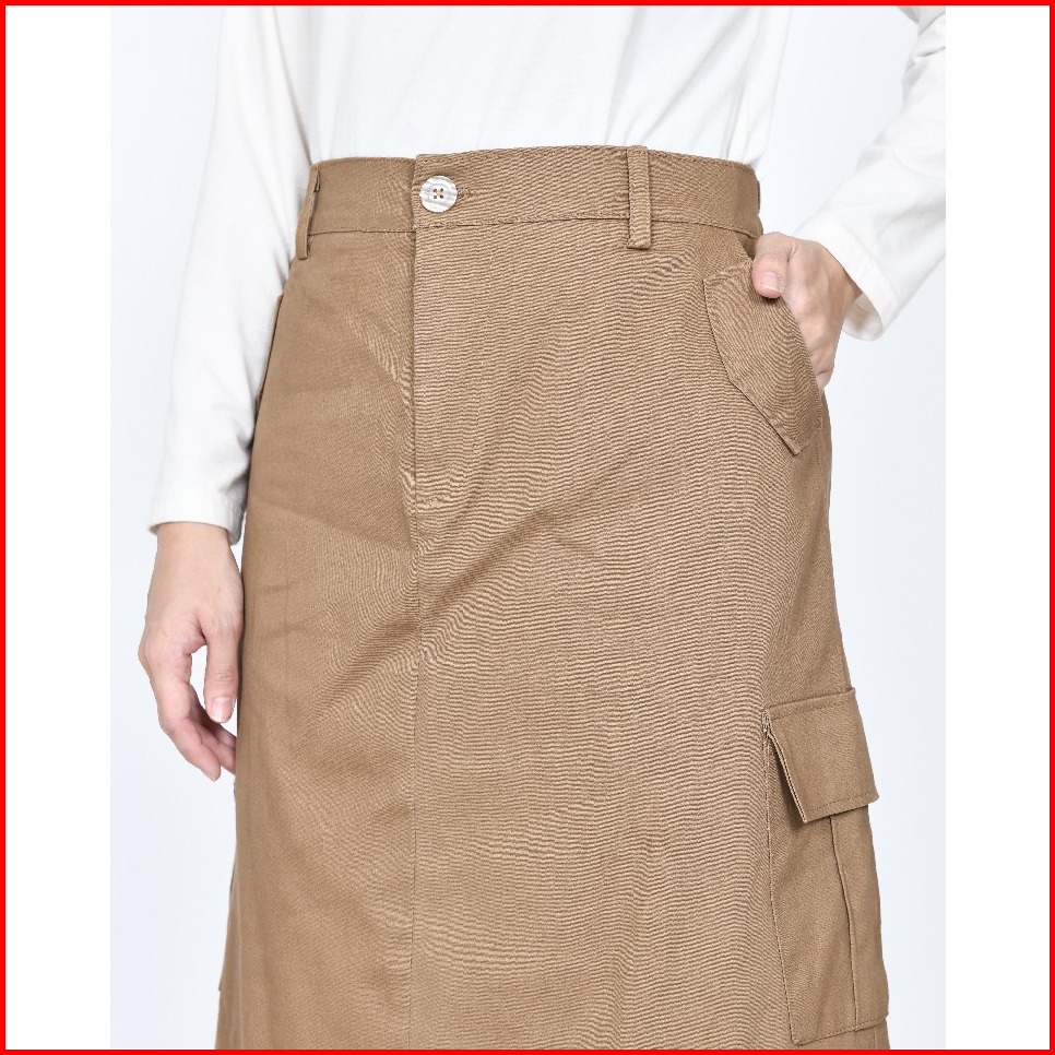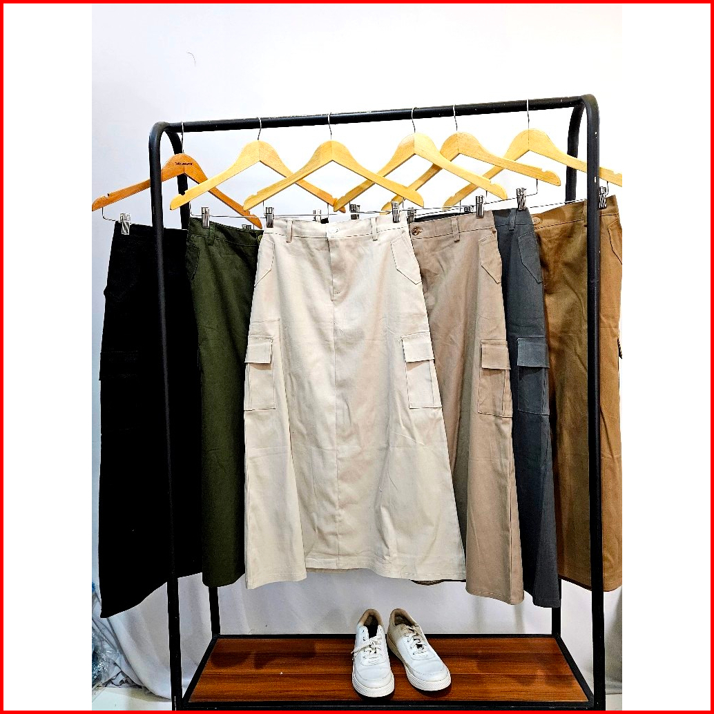 Long Skirt Cargo Jennie Lezahrasignature Rok Kargo Katun Twill Wanita Panjang Fit 80 Kg