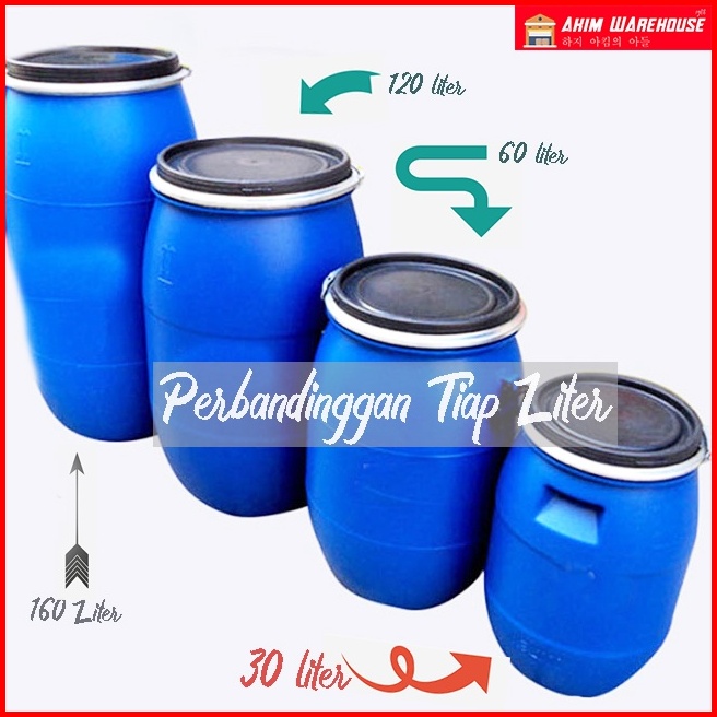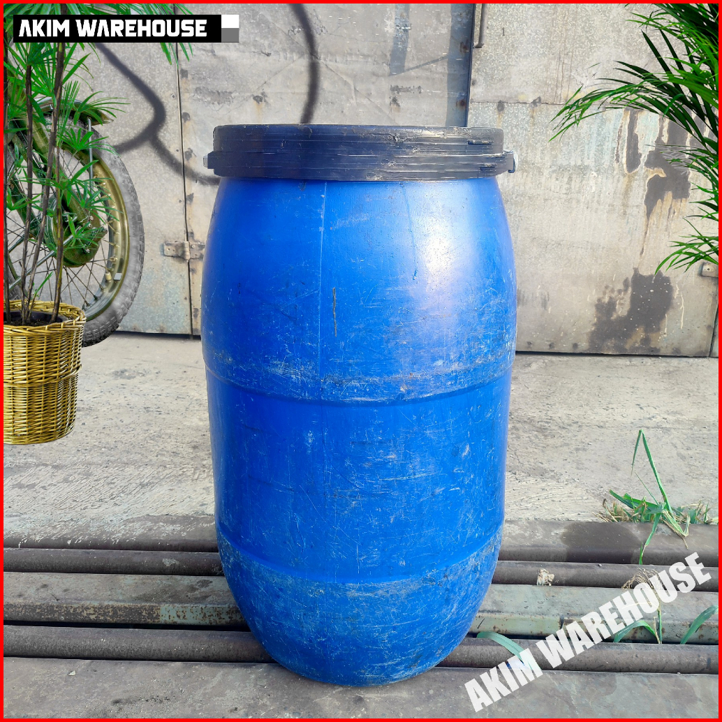 Drum Tong 120 Liter Grade Original Industrial Fermentasi Air Kimia Tempat Sampah Plastik Hdpe Biru Ring Pengunci