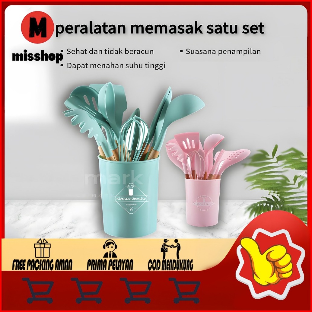Ms Best Seller Silicone Utensil Set Isi 12pcs Spatula Silicone Set Bpa Free Wadah
