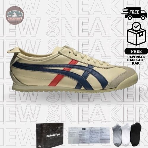 Sepatu Onitsuka Tiger Sepatu Pria Sepatu Wanita Tiger Mexico 66 CreamNavyRed Free Paperbag sepatu onitsuka original pria