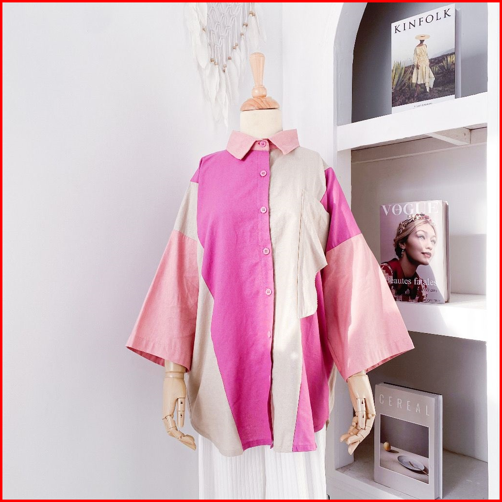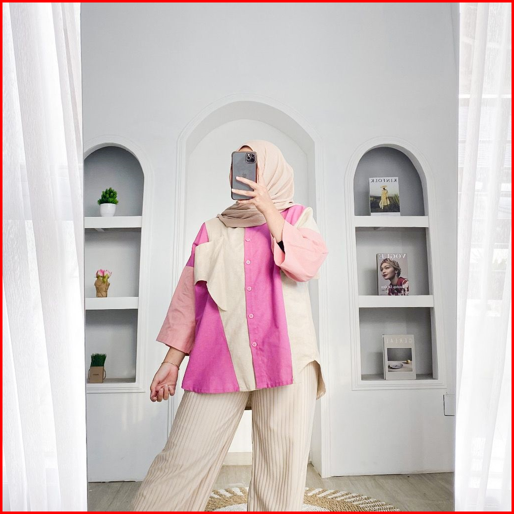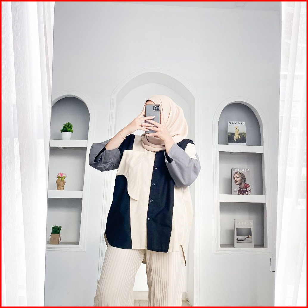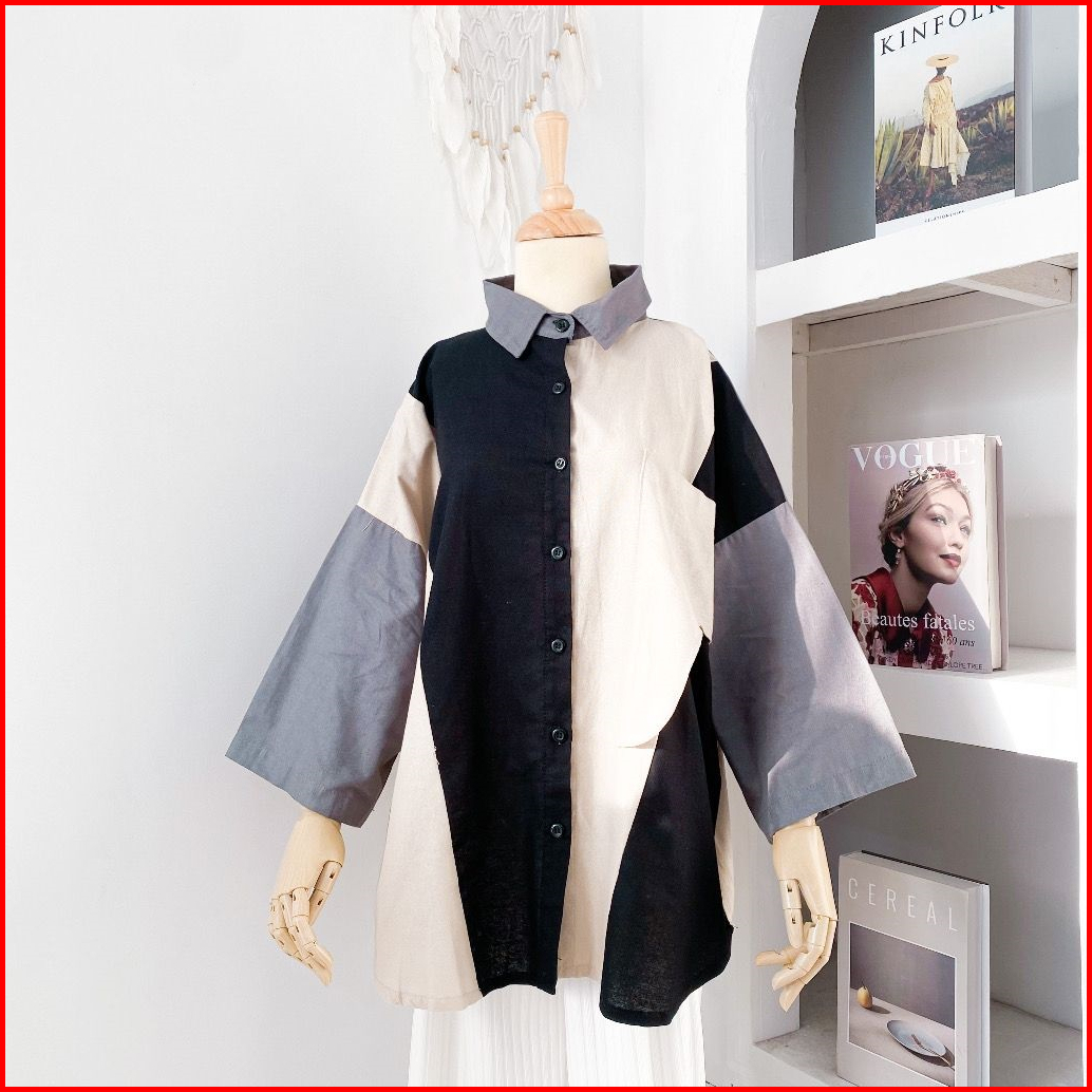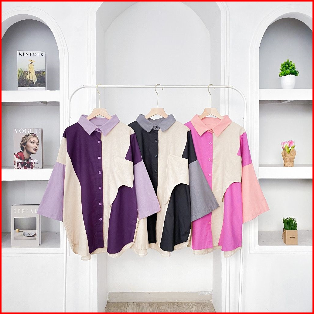 Atasan Wanita Kekinian Maiza Shirt Atasan Blouse Oversize Kasual Kemeja Polos Wanita Terbaru
