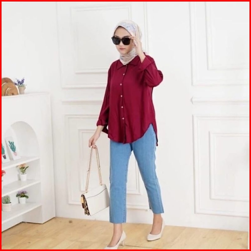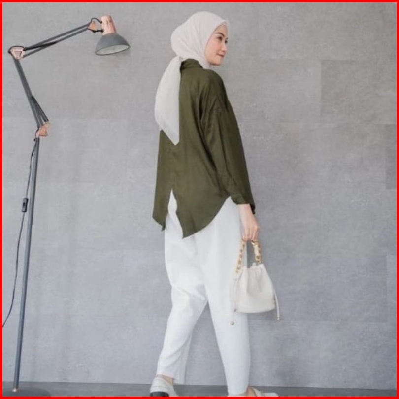 Atasan Wanita Nelka Shirt Linen Oversize Korean