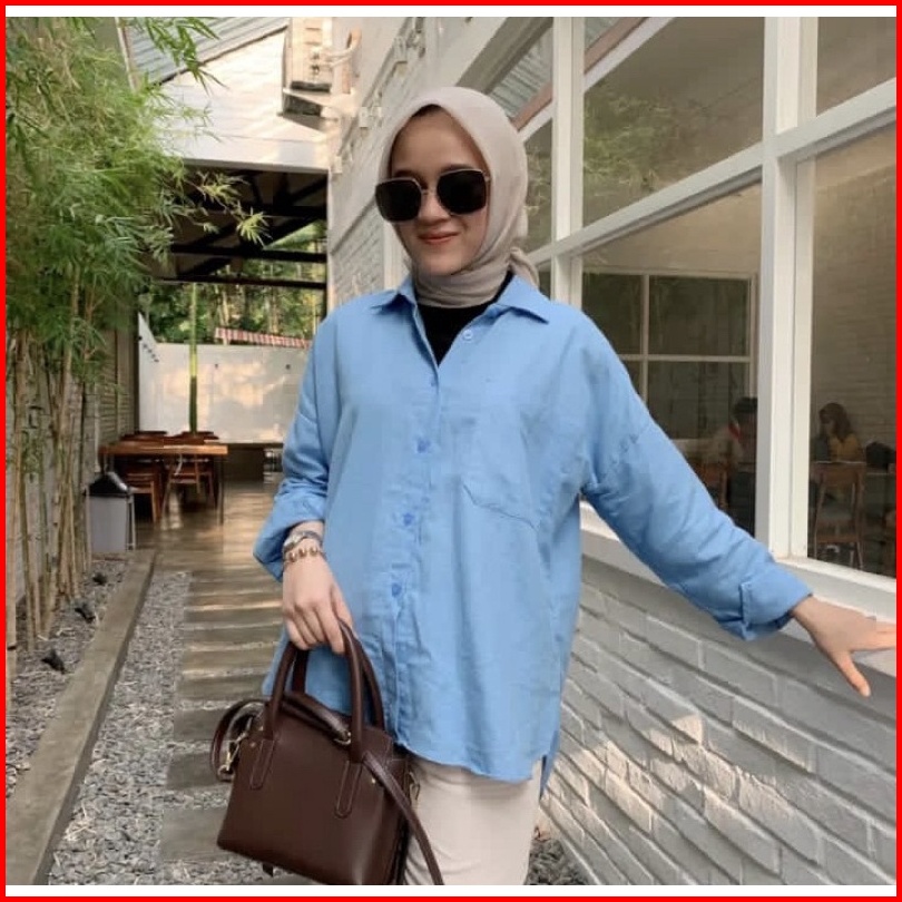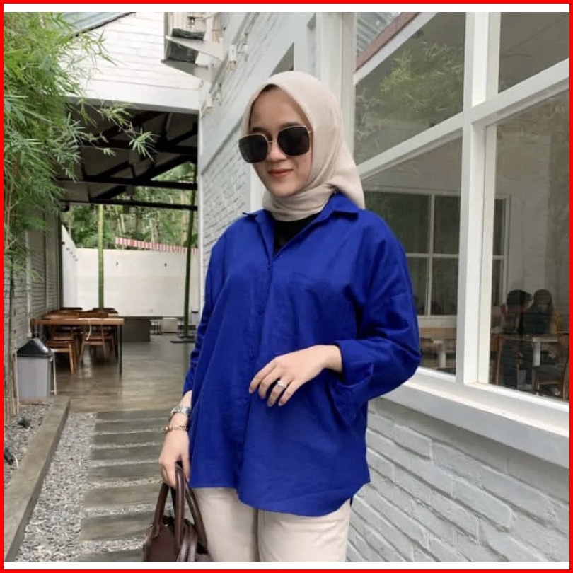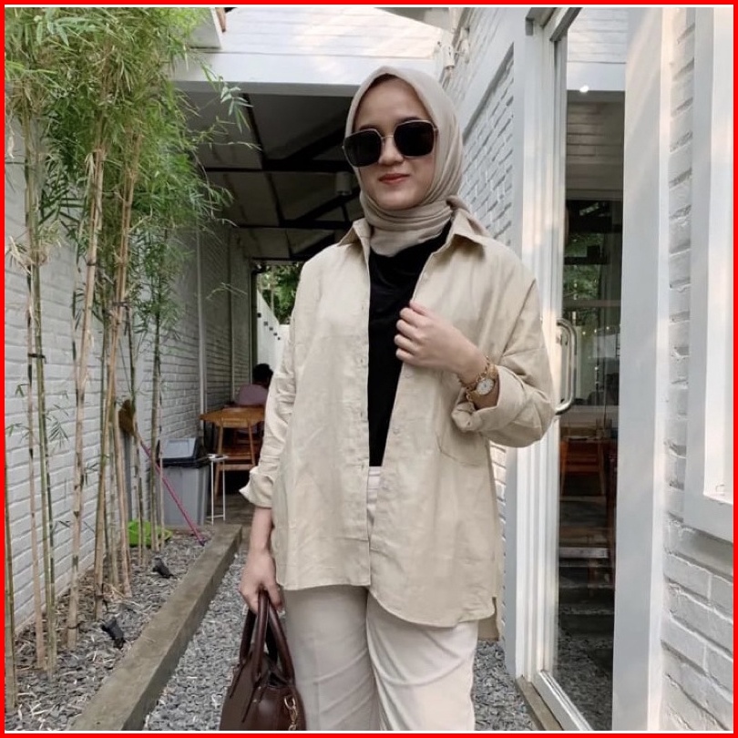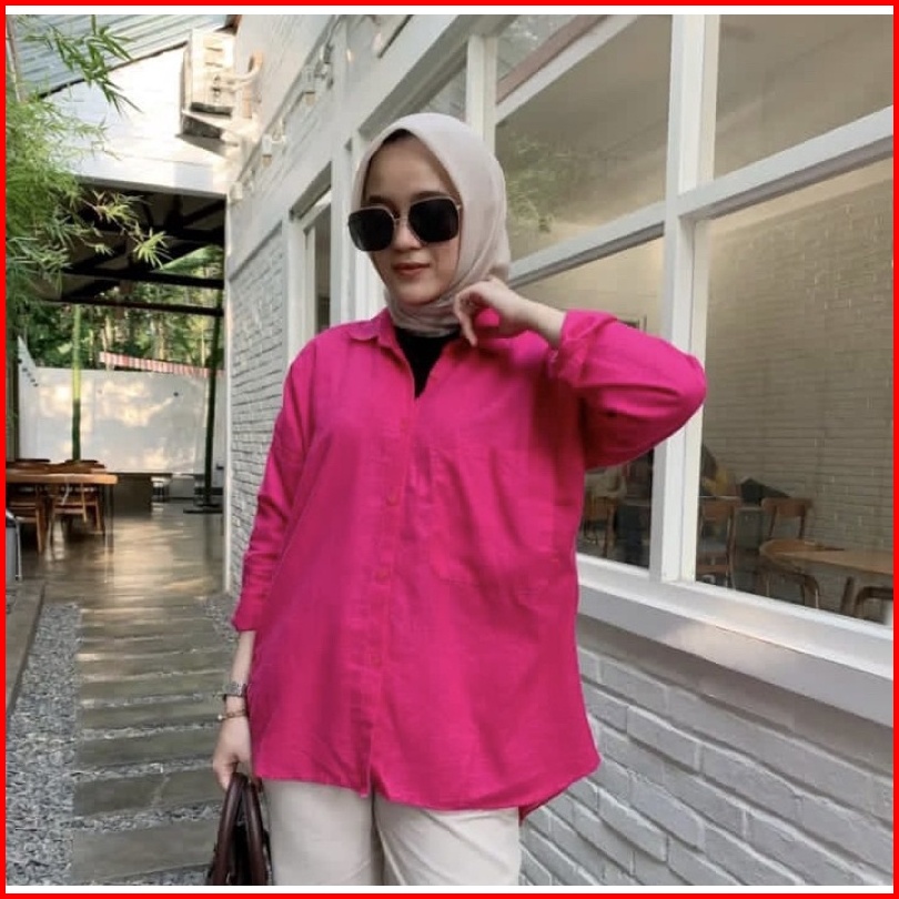 Kemeja Wanita Oversize Katun Linen Korean Style