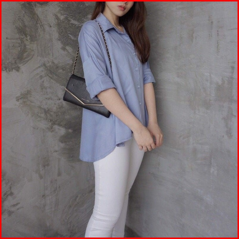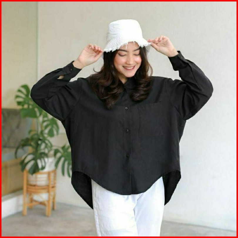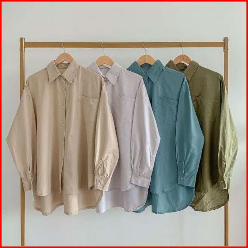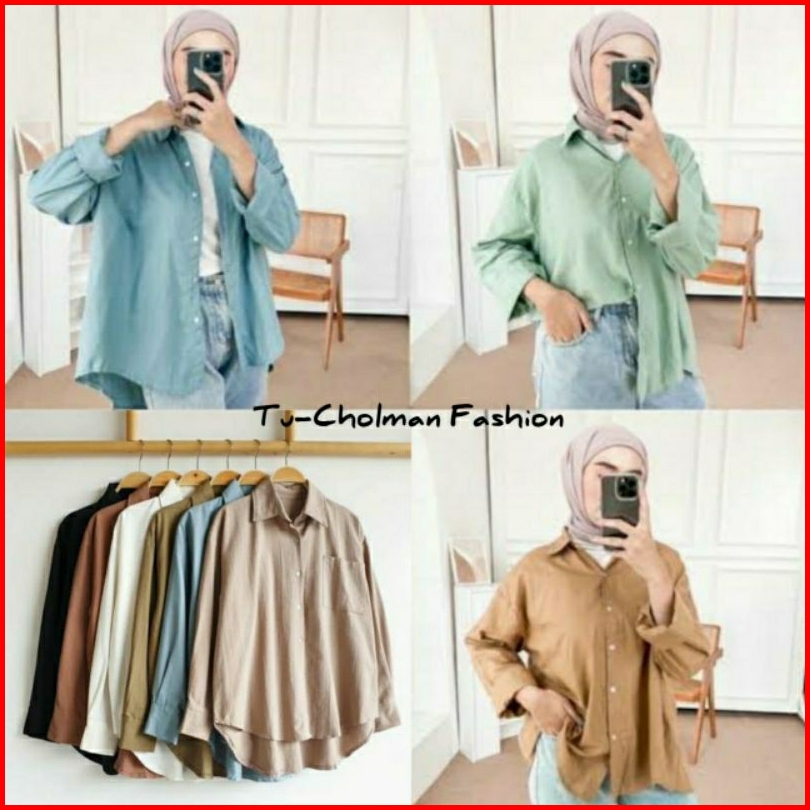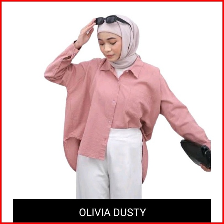 Kemeja Wanita Linen Oversize Kemeja Lengan Panjang Pocket Olivia Shirt