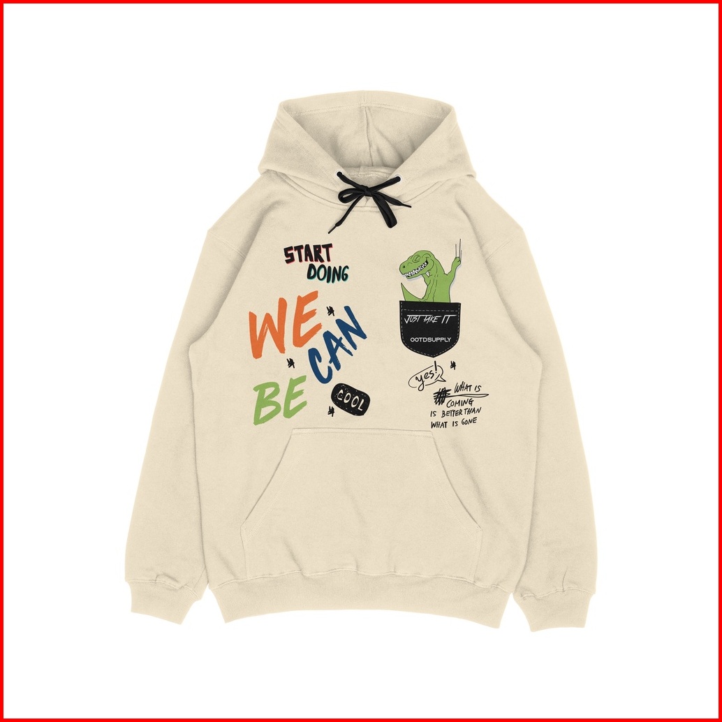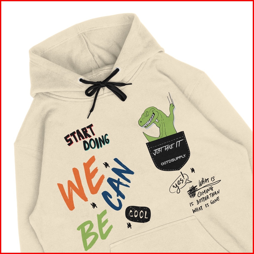 Ootdsupply Pullover Hoodie T-rex Cream Hoodie Pria Wanita Hd015