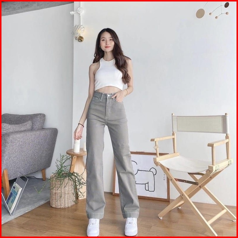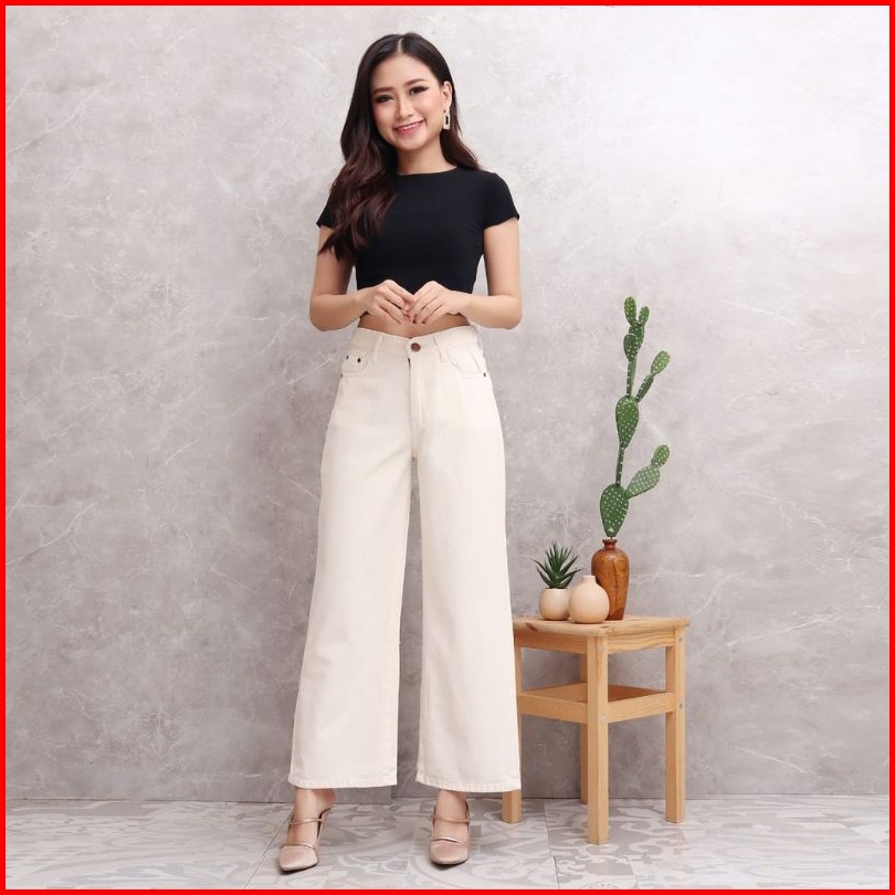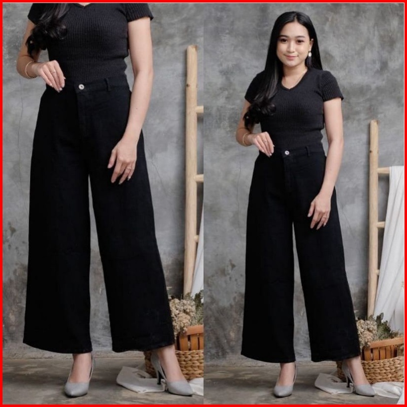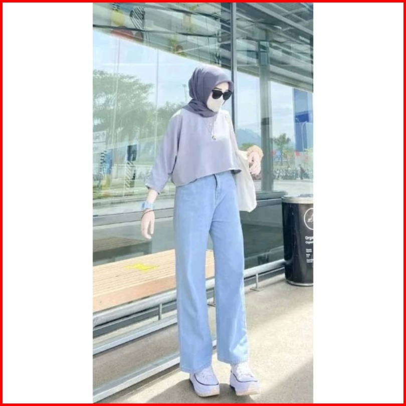 Highwaist Kulot Jeans Premium Wanita Light Blue Celana Jeans Wanita
