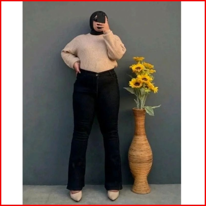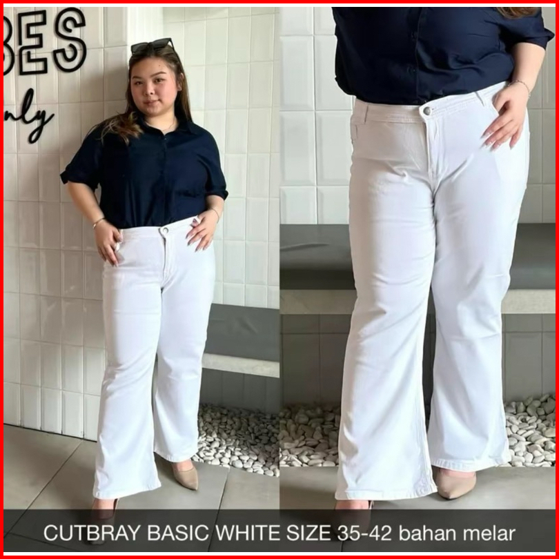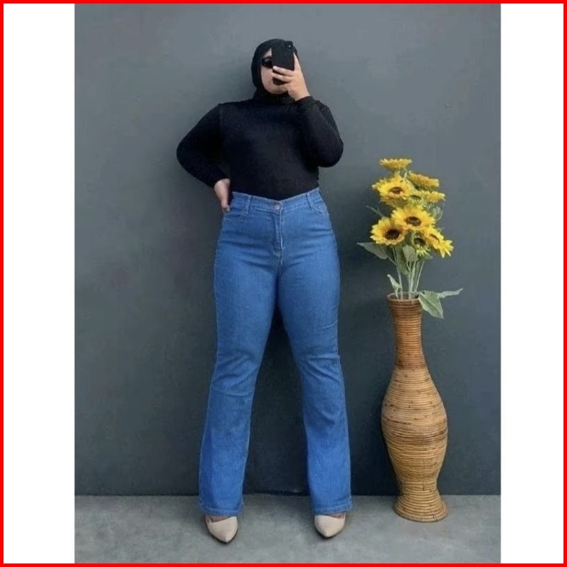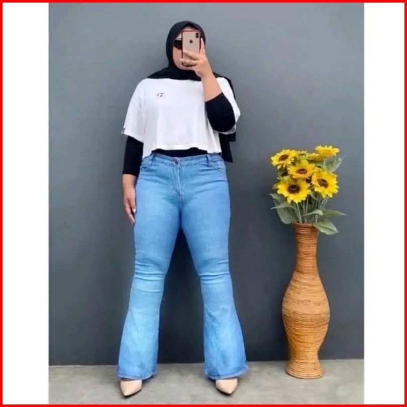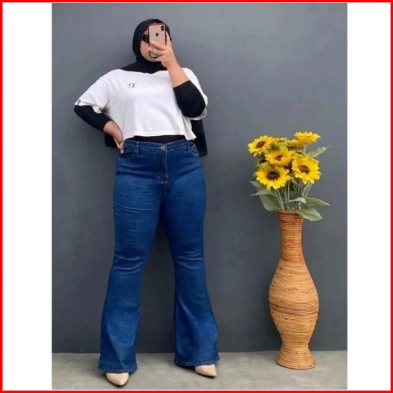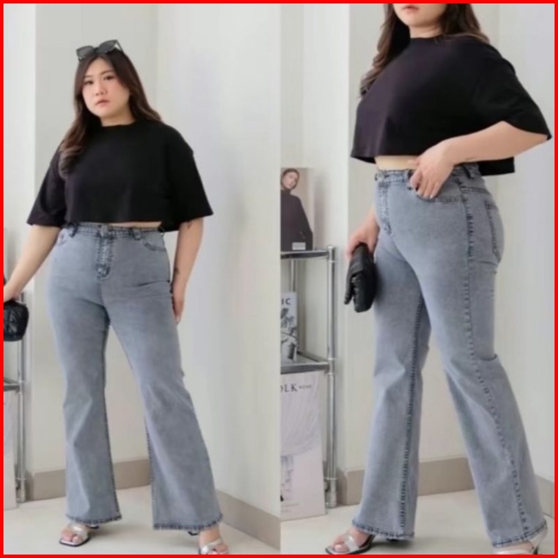 Big Size Cutbray Jumbo Jeans Wanita Highwaist