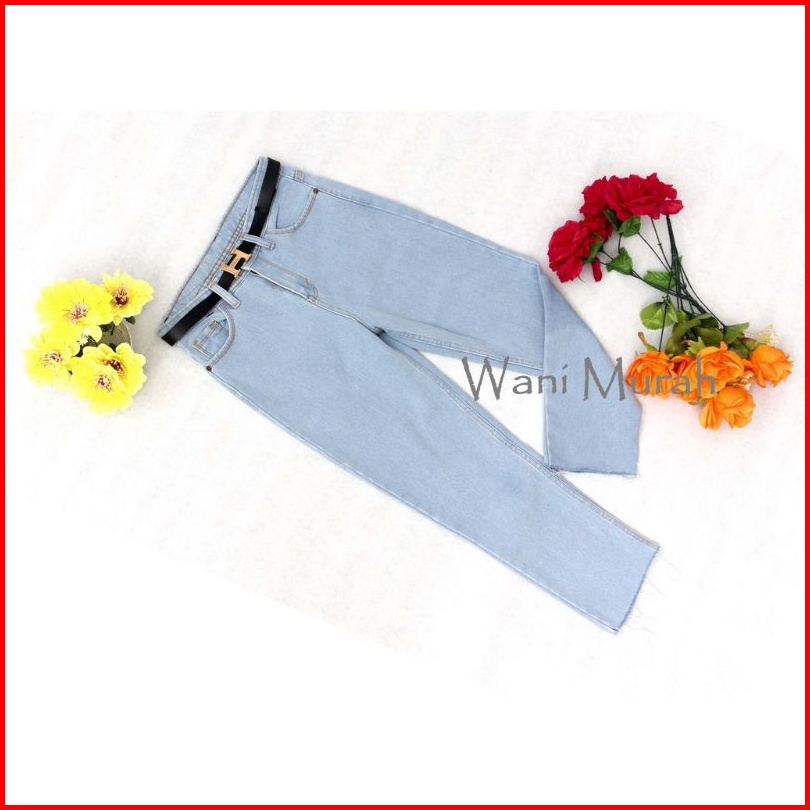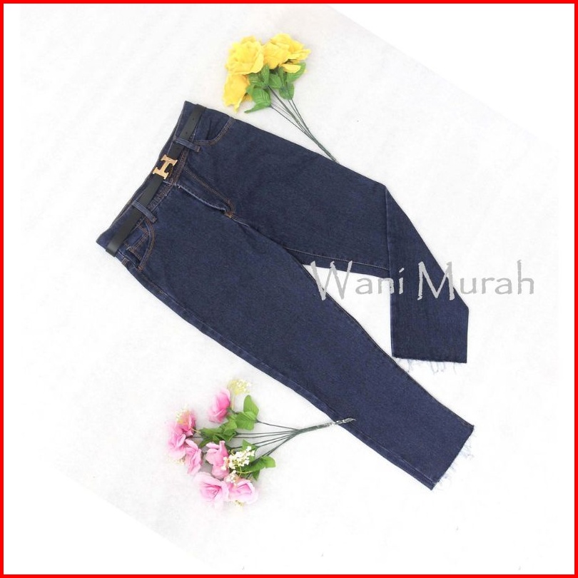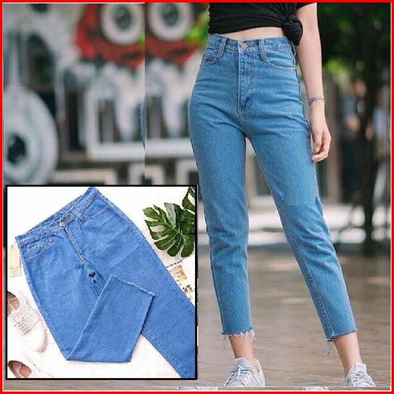 Celana Wanita Boyfriend Jeans Suwir Rawis Bawah Celana Jeans Higwaist Panjang Polos