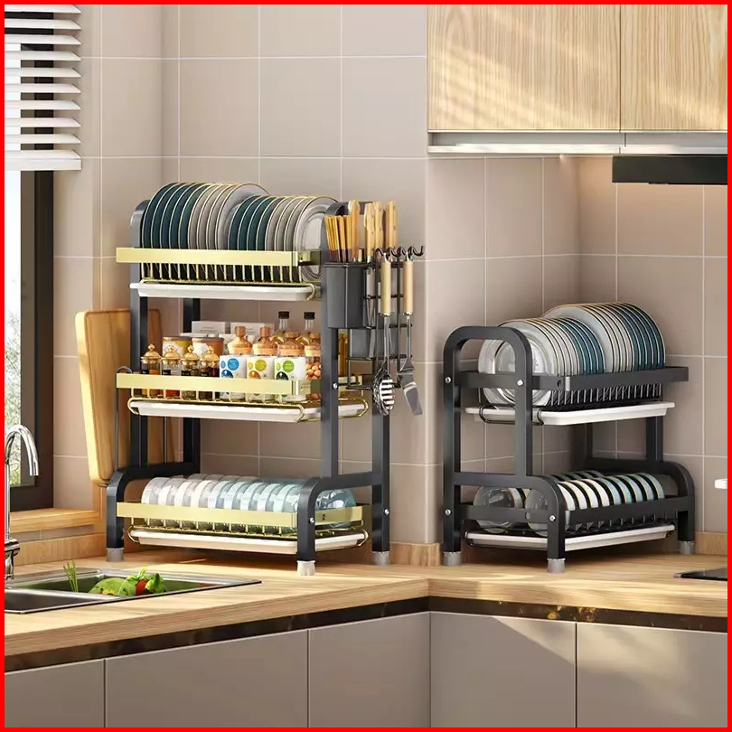 Rak Piring Dapur Stainless Steel Rak Piring Multifungsi Rak Mangkuk Piring Rak Peniris Serbaguna