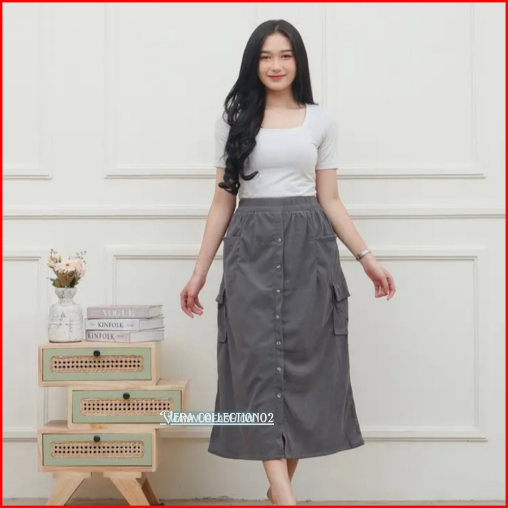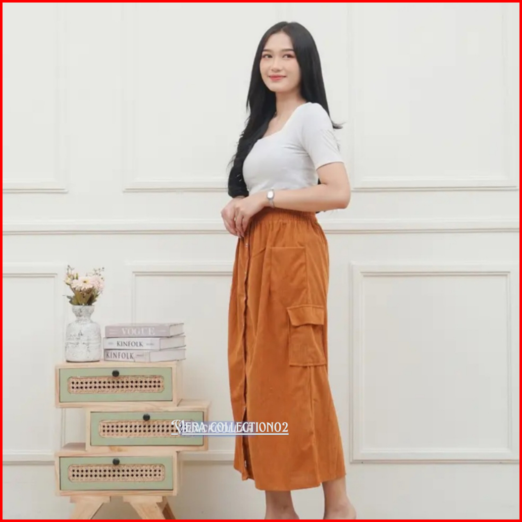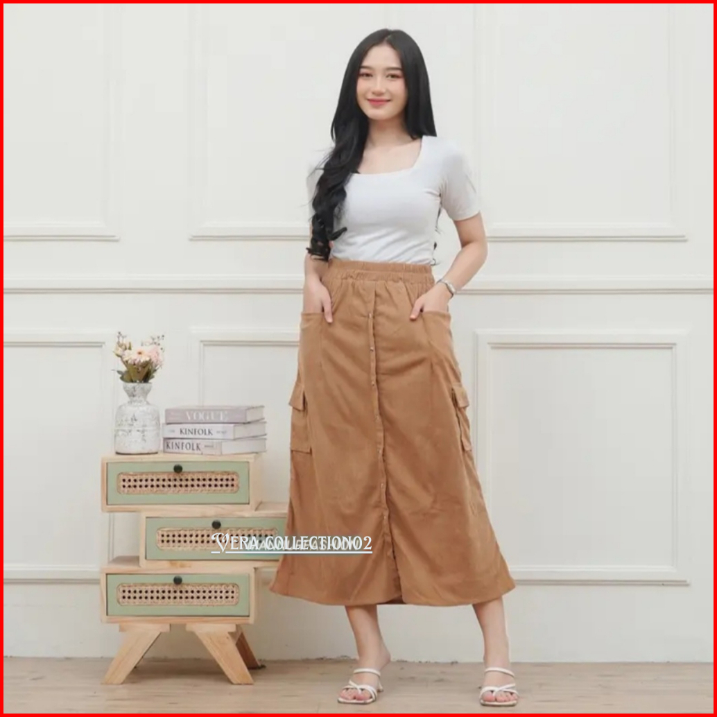 Rok Ovia Cargo Skirt Korean Style Bahan Conduroy Premium Rok Panjang Diatas Ankle Lenght Wanita Muat Bb Standart Dan Jum