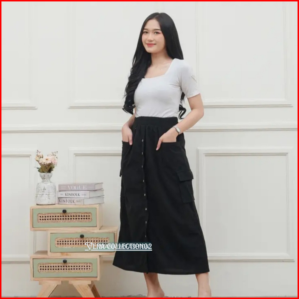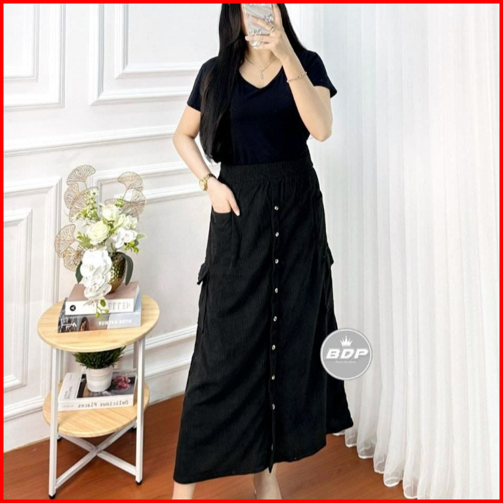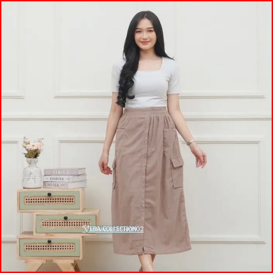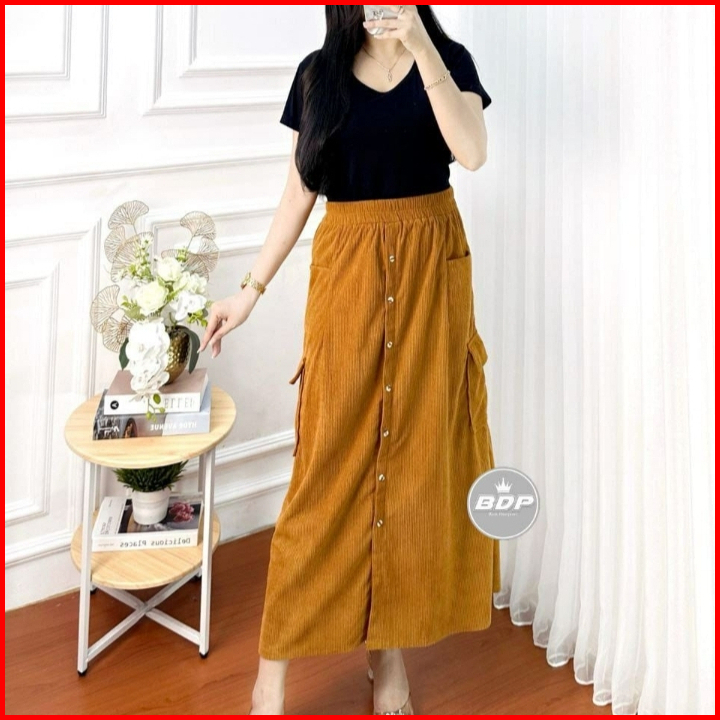 Rok Ovia Cargo Skirt Korean Style Bahan Conduroy Premium Rok Panjang Diatas Ankle Lenght Wanita Muat Bb Standart Dan Jum