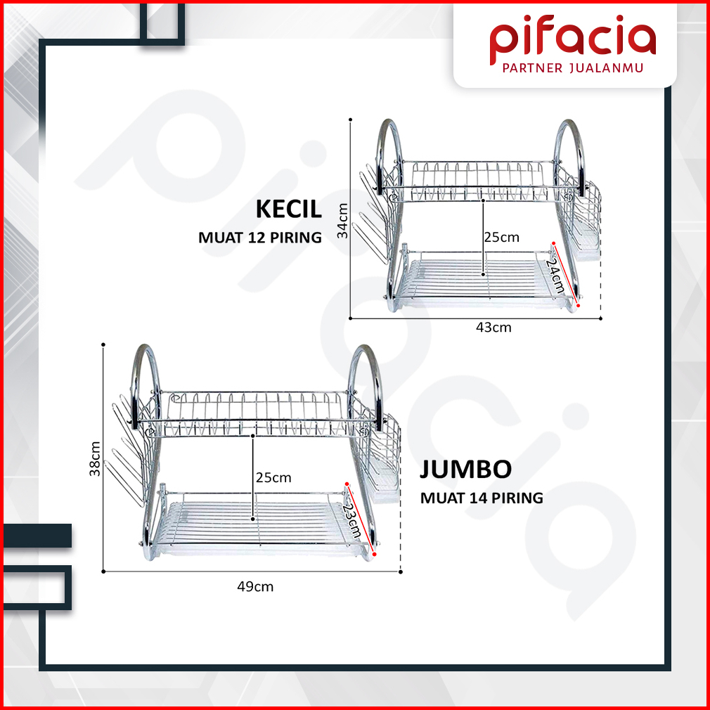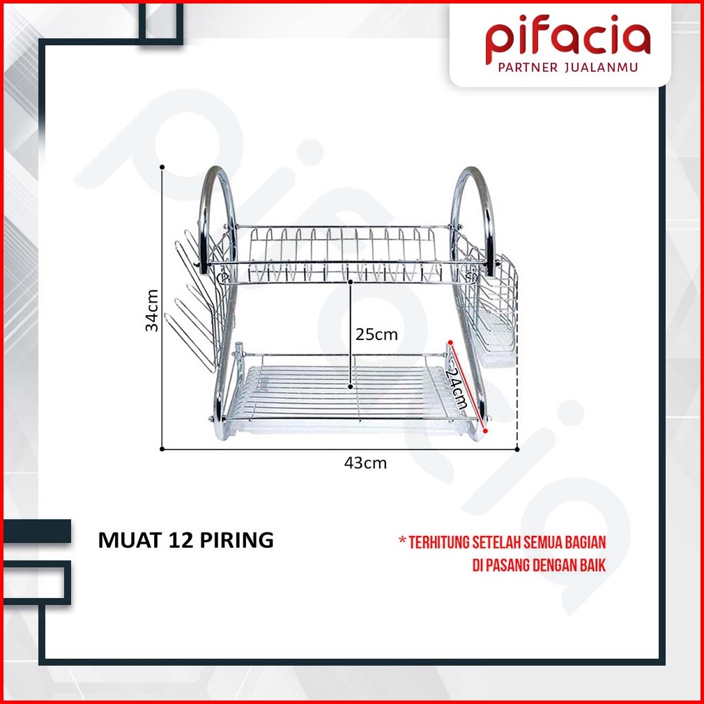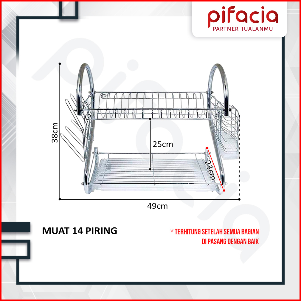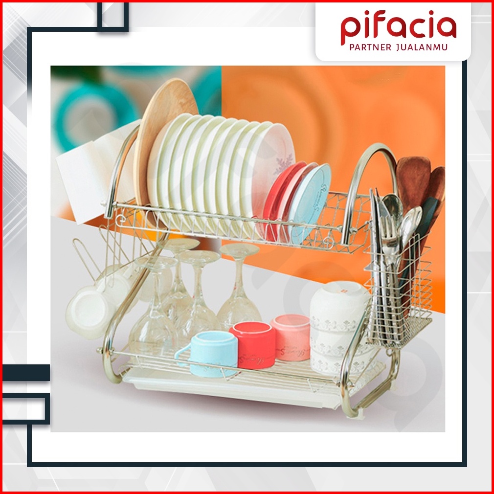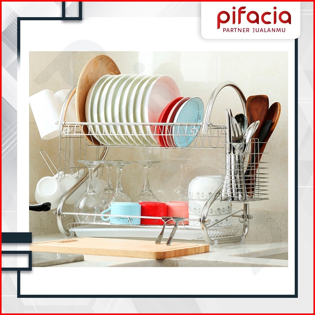 Pifacia Rak Piring 2 Susun Stainless Steel Rak Peralatan Dapur Premium