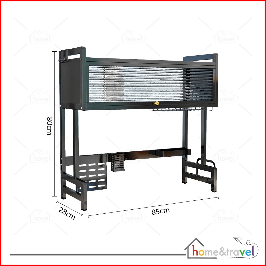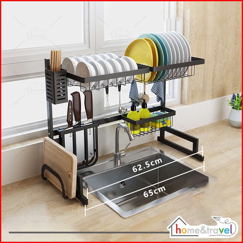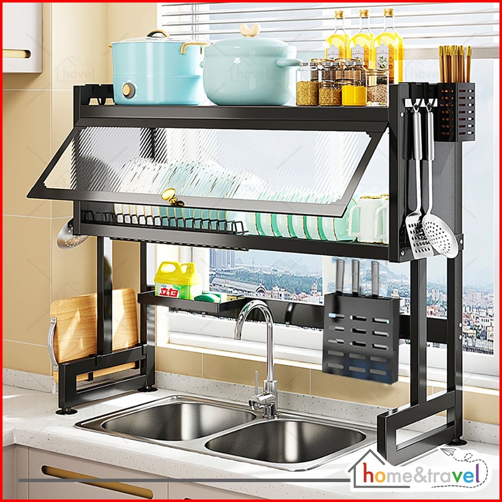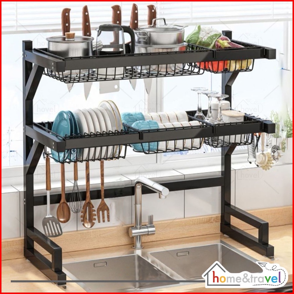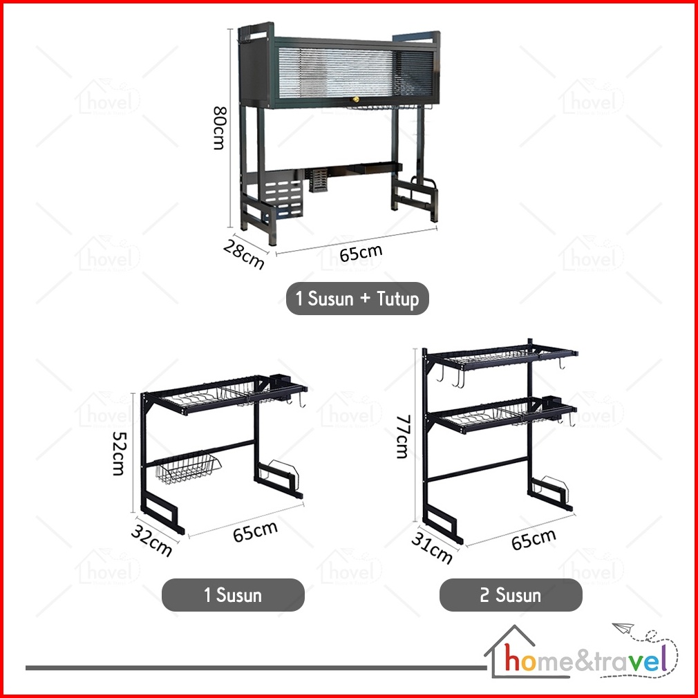 Hovelshop Rak Piring Dapur Wastafel Stainless Hitam 2 Susun Pakai Tutup 85cm Premium Anti Karat