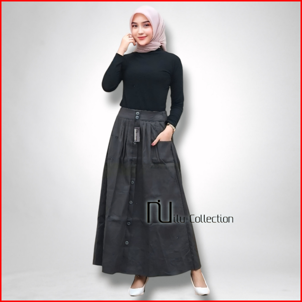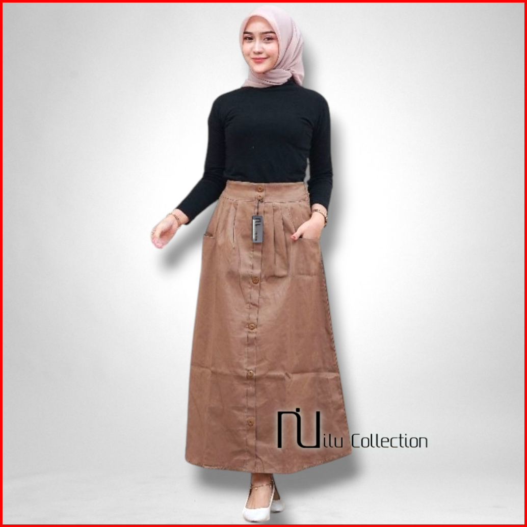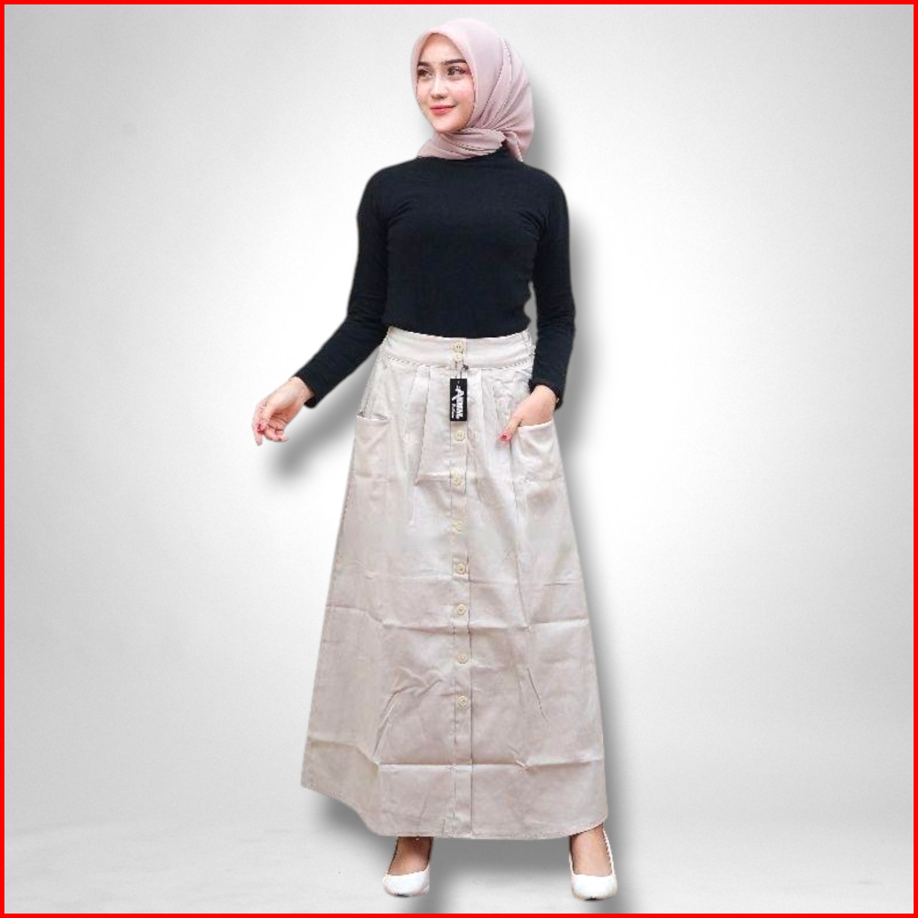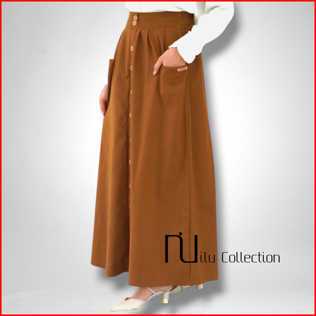 Rok Nuna Skirt Korea Style A-line Rok Panjang Kekinian Bahan Cotton Twill Muat Bb Standar Dan Jumbo