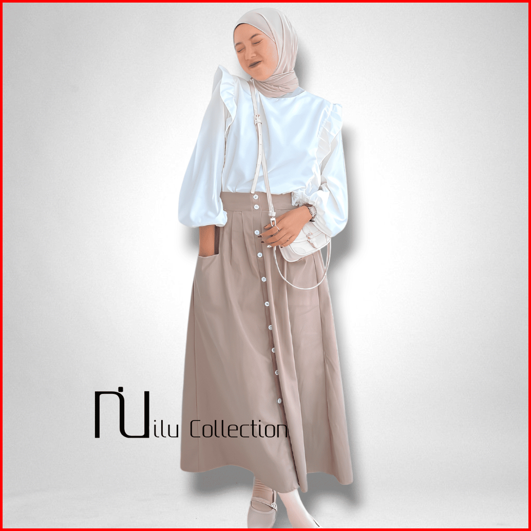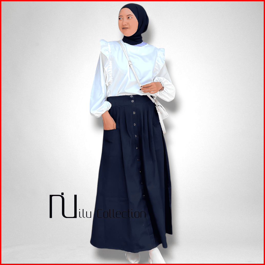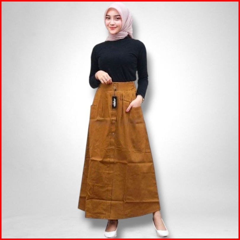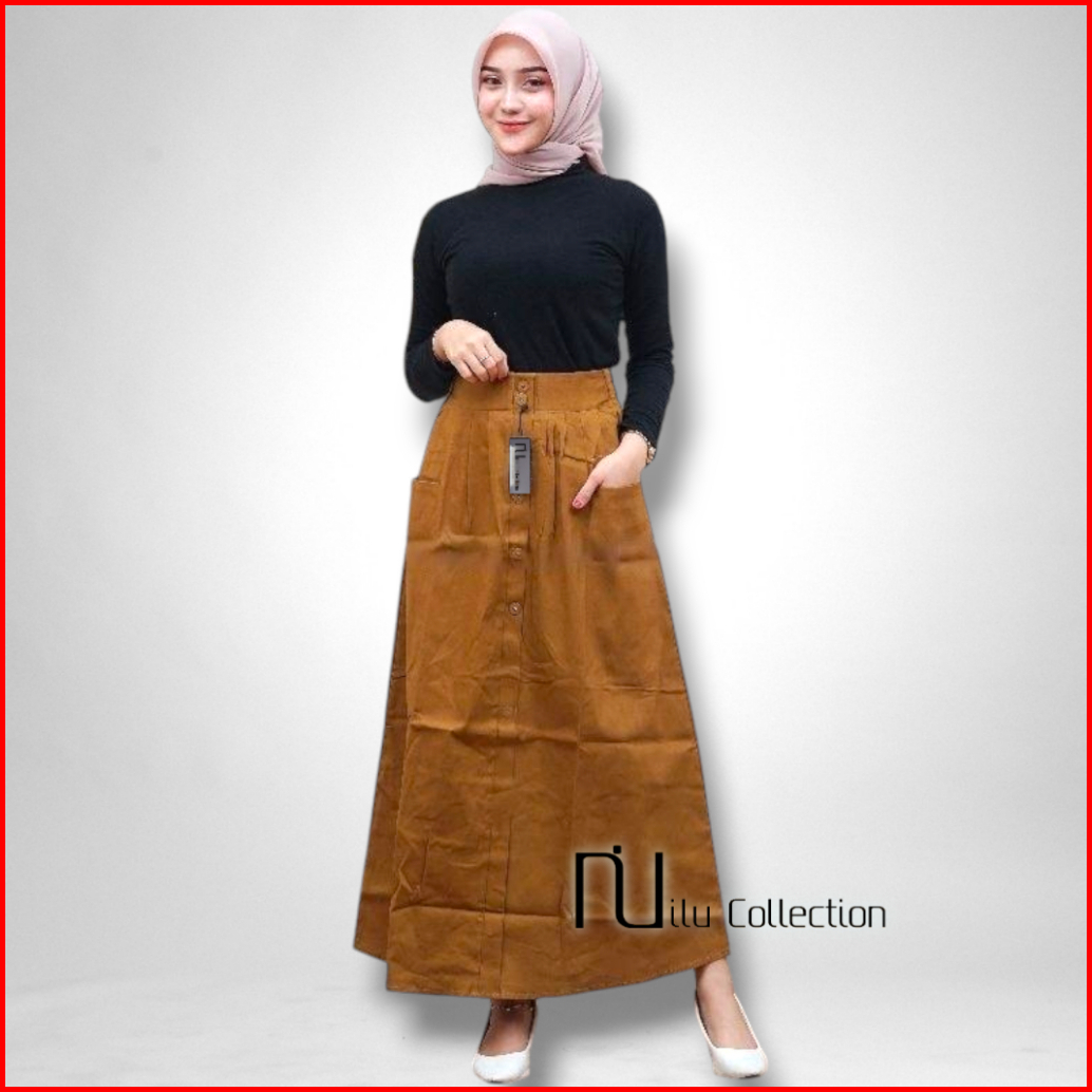 Rok Nuna Skirt Korea Style A-line Rok Panjang Kekinian Bahan Cotton Twill Muat Bb Standar Dan Jumbo