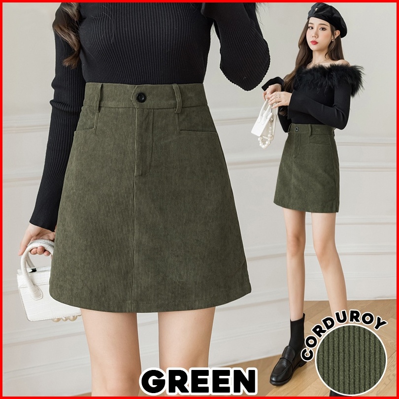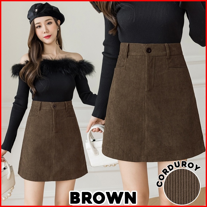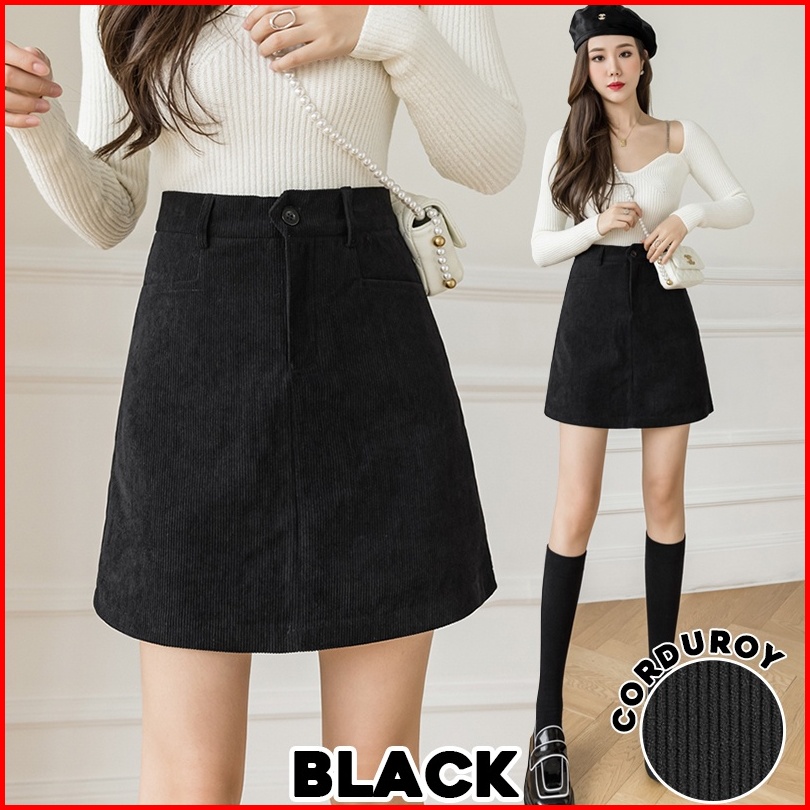 Karakorea 301 Corduroy Velvet Skirt Korean Women Skirt Rok Pendek Rok Beludru
