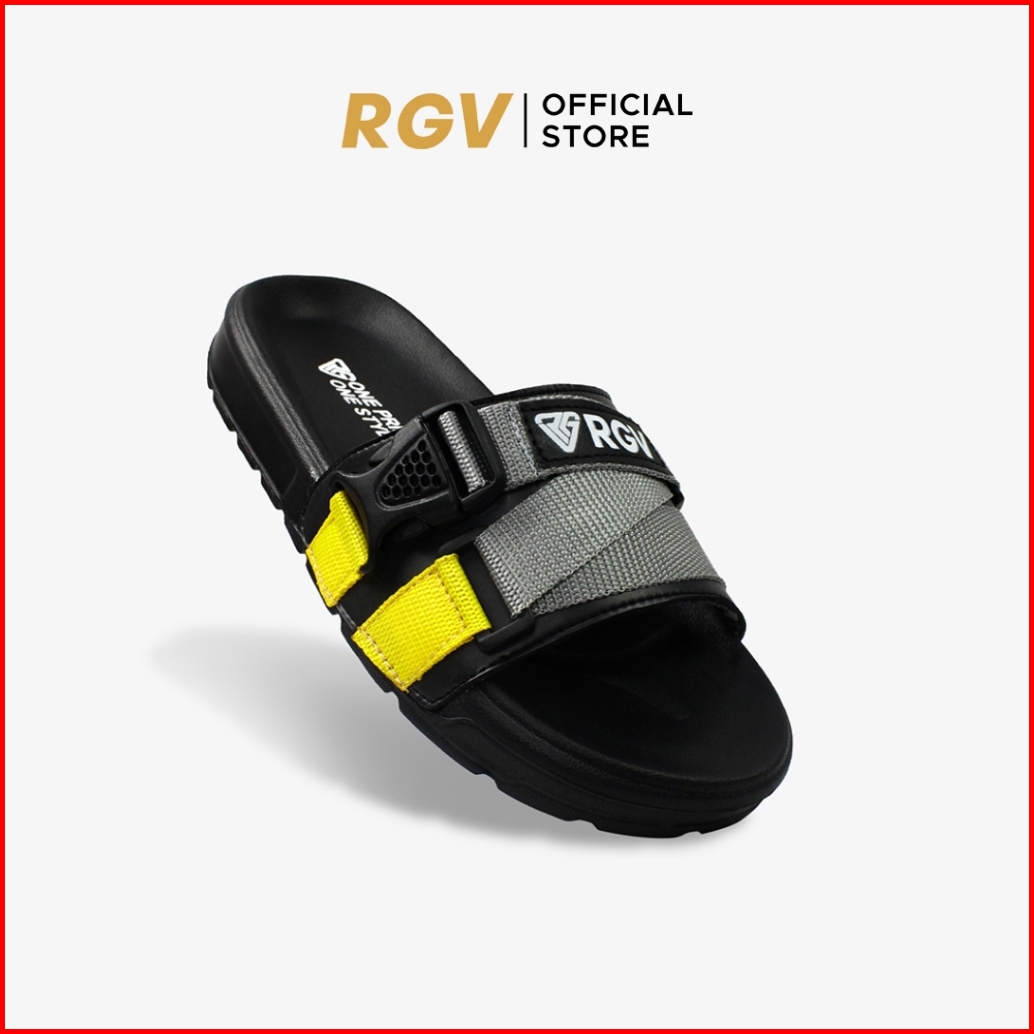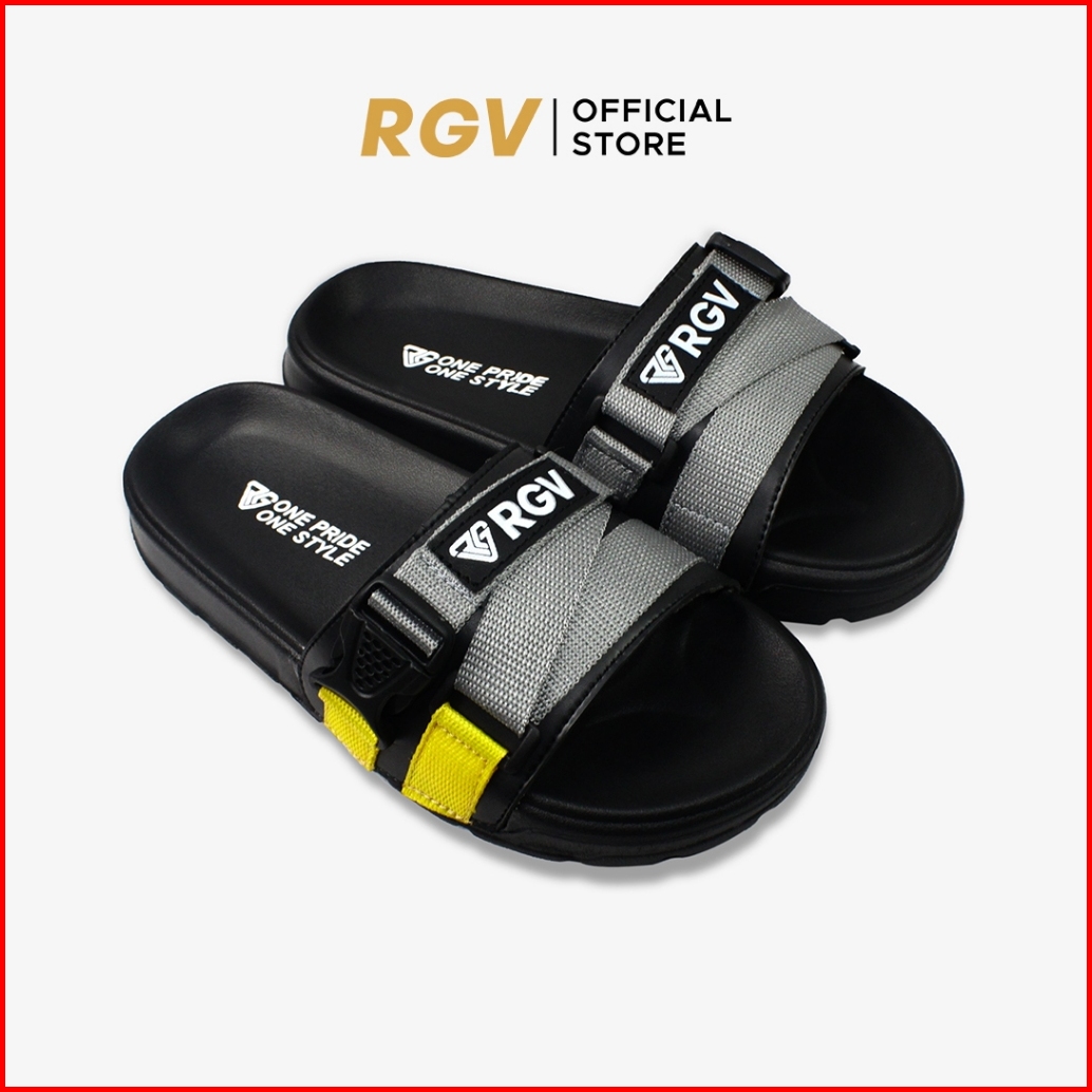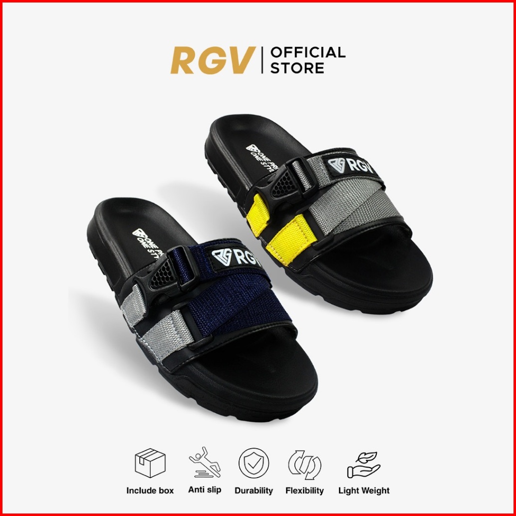 Rgv 39 - 43 Sandal Selop Pria Webbing Grey Yellow Dark Grey Navy - Sendal Slip On Casual Pria
