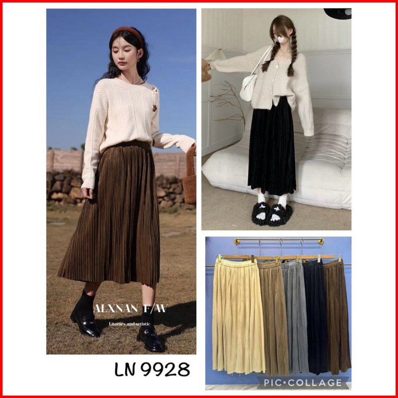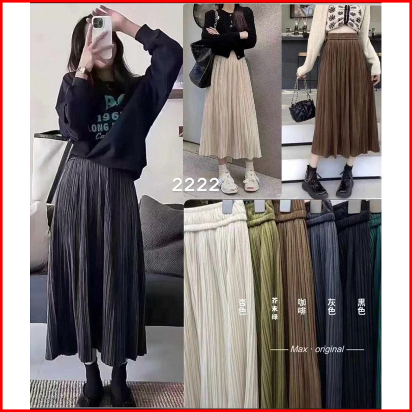 Rok Midi Plisket Corduray Import Rok Suede Import Bangkok