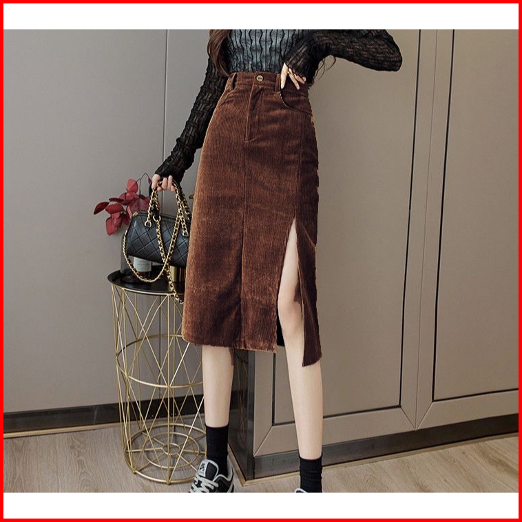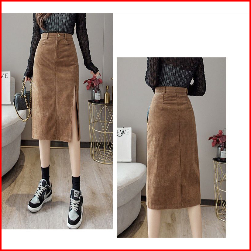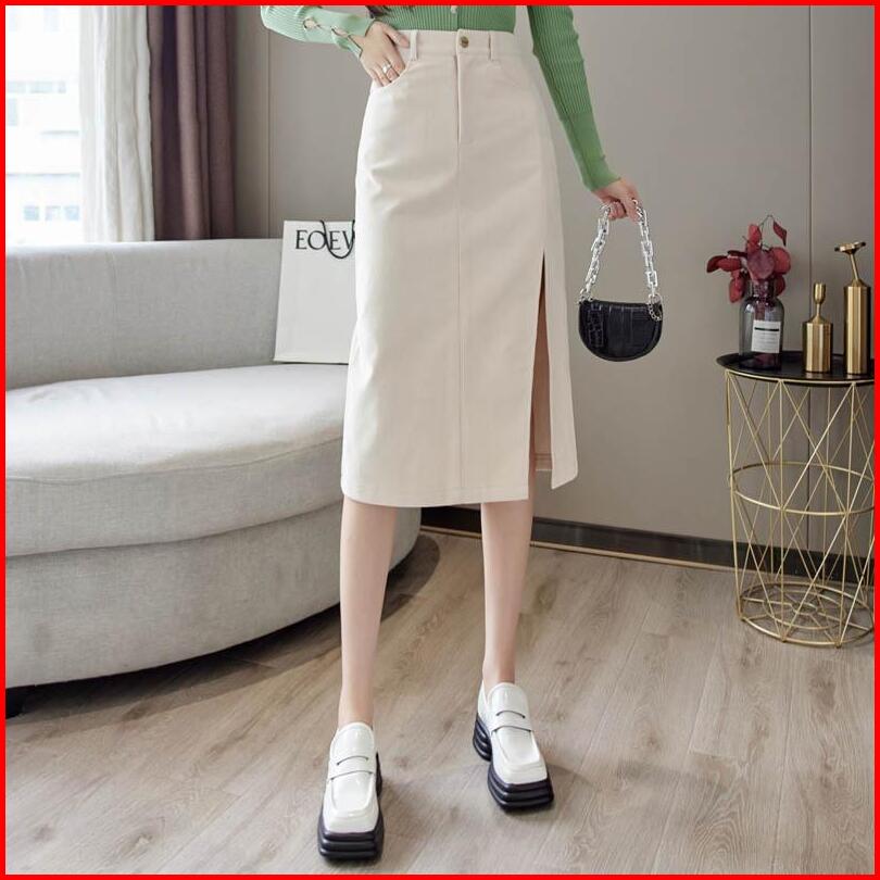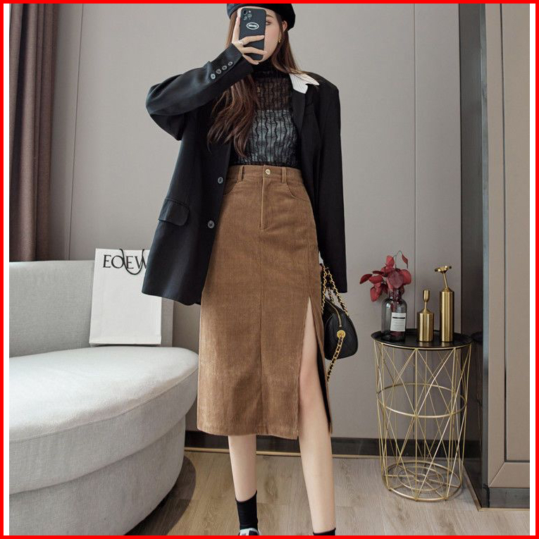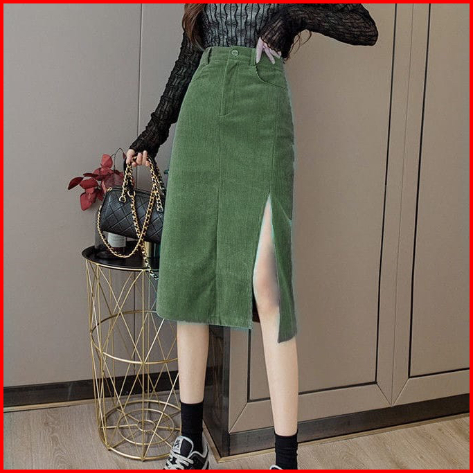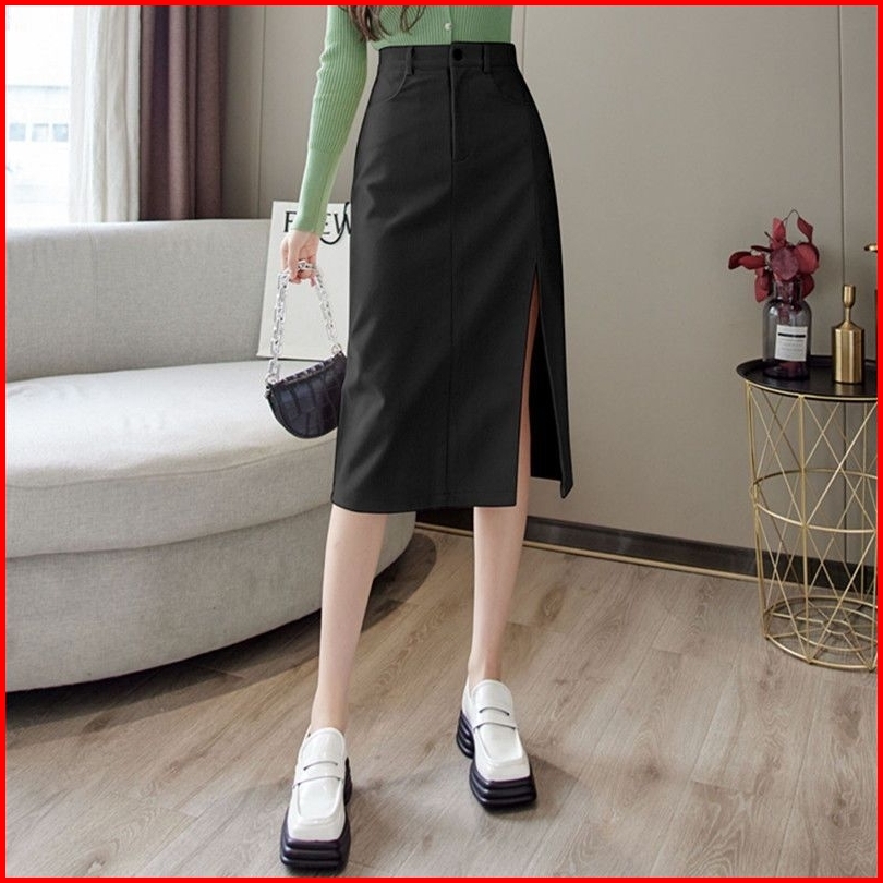Missmoka Dakota Midi Skirt Slit Autum Spring Korean Style Rok Pensil Rok Sepan