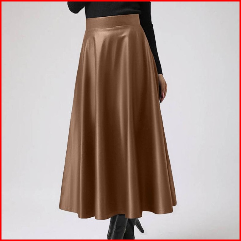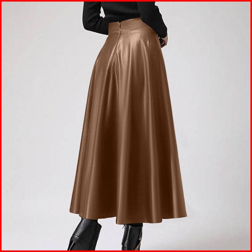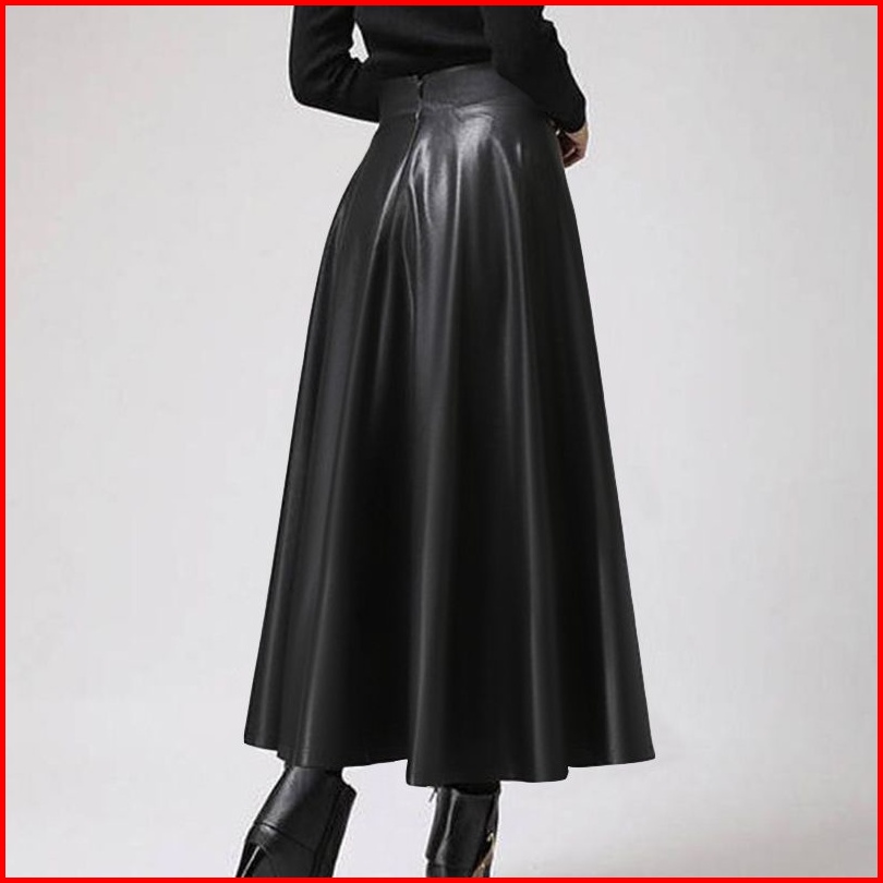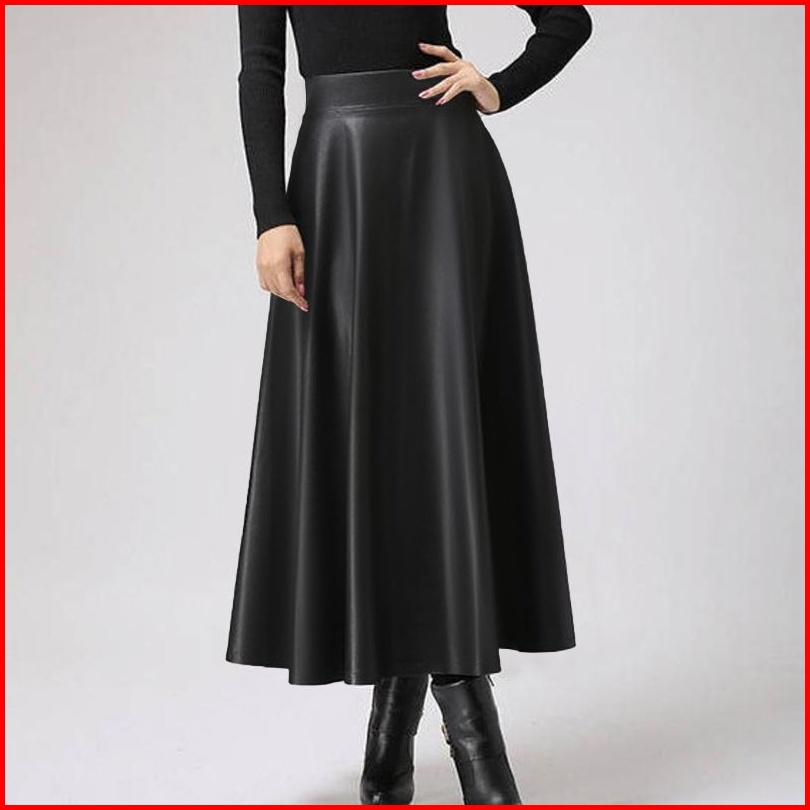 Rok Kulit Panjang Rok Semi Kulit Vintage Model Payung Terbaru