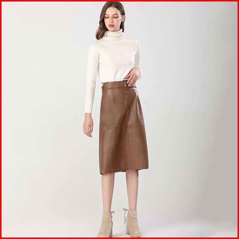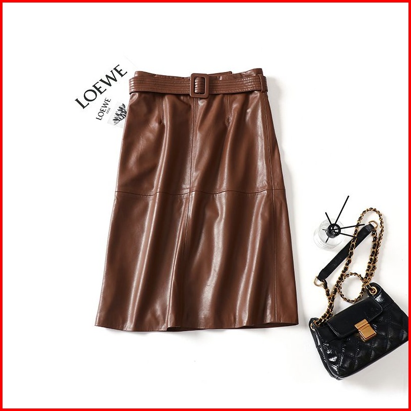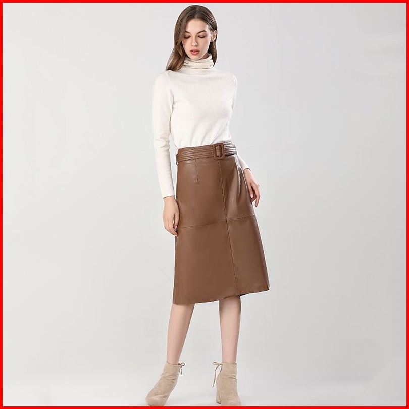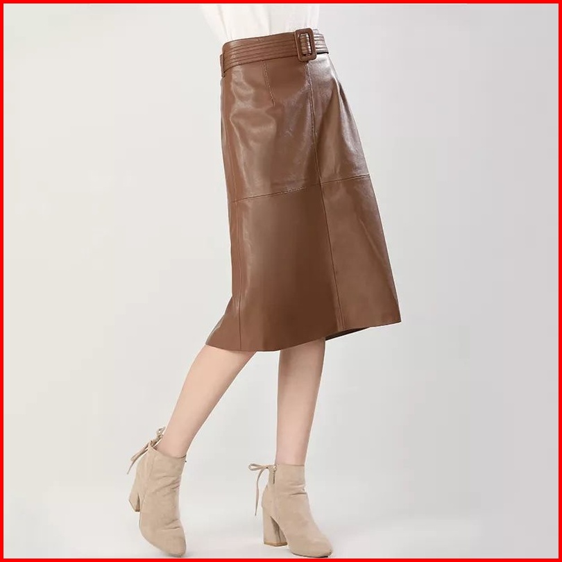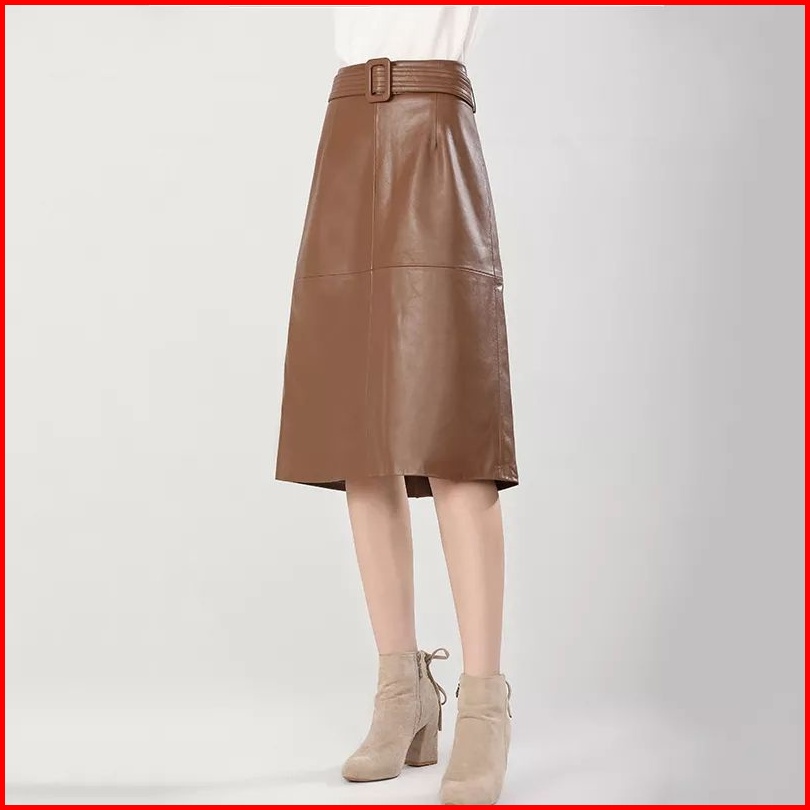 Rok Wanita Kulit Pu Rok A-line Musim Gugur