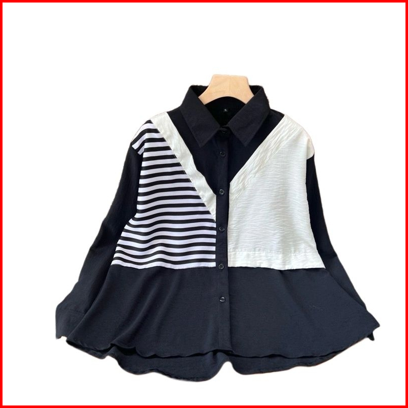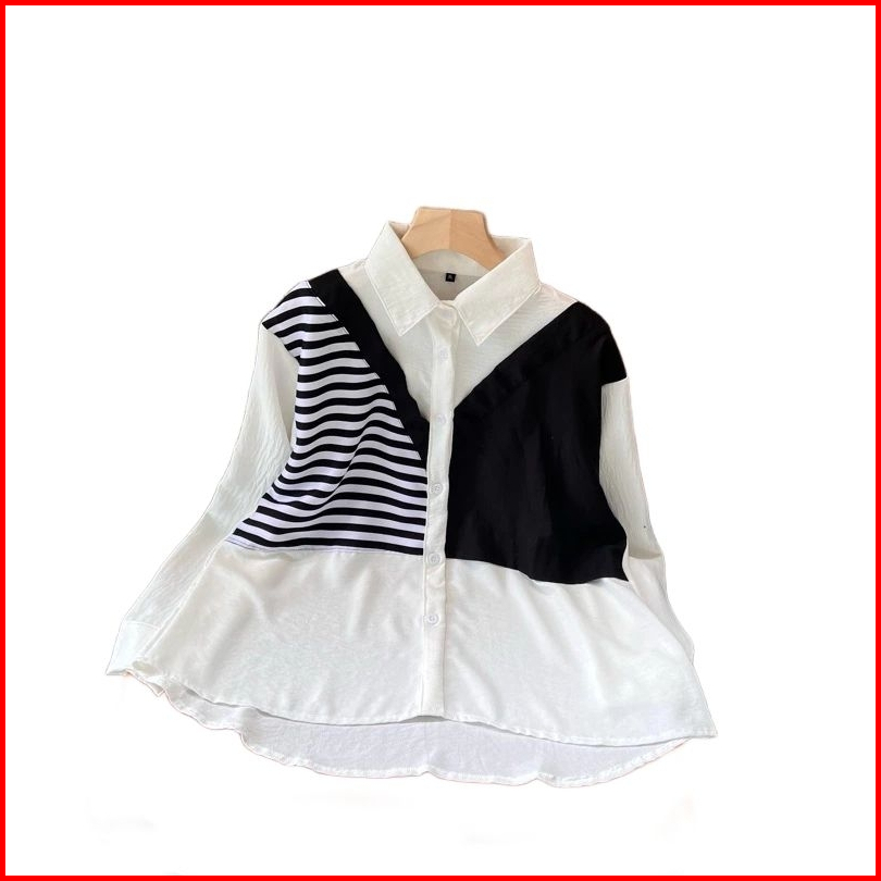 Kemeja Wanita Silvi Kombinasi Salur Lengan Panjang