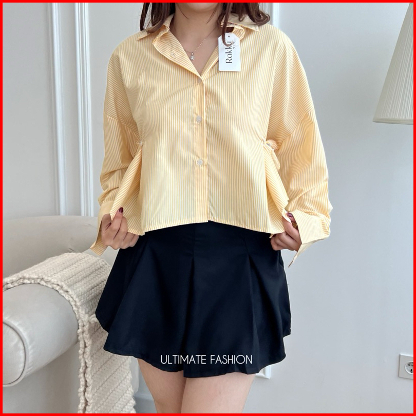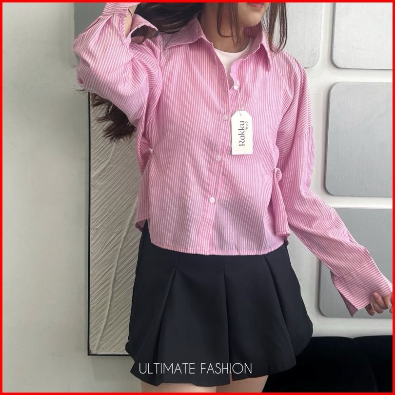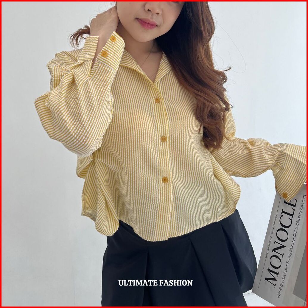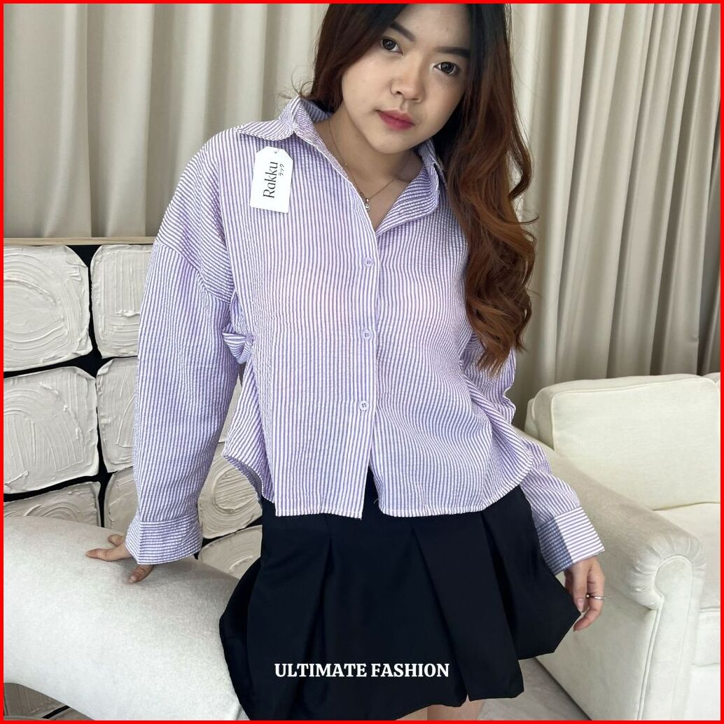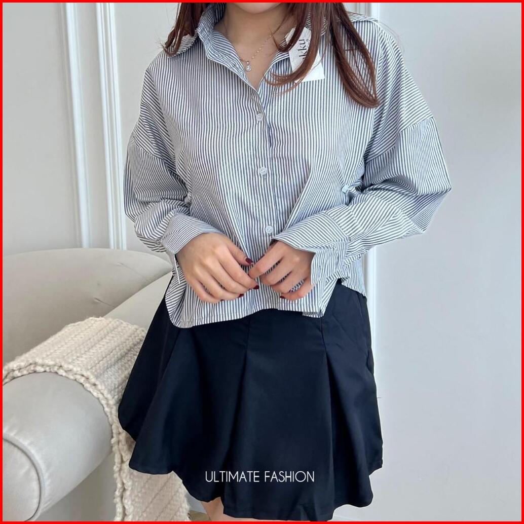Jolie Shirt Katun Import - Kemeja Oversize Jumbo Wanita - Striped Shirt Rakku 281