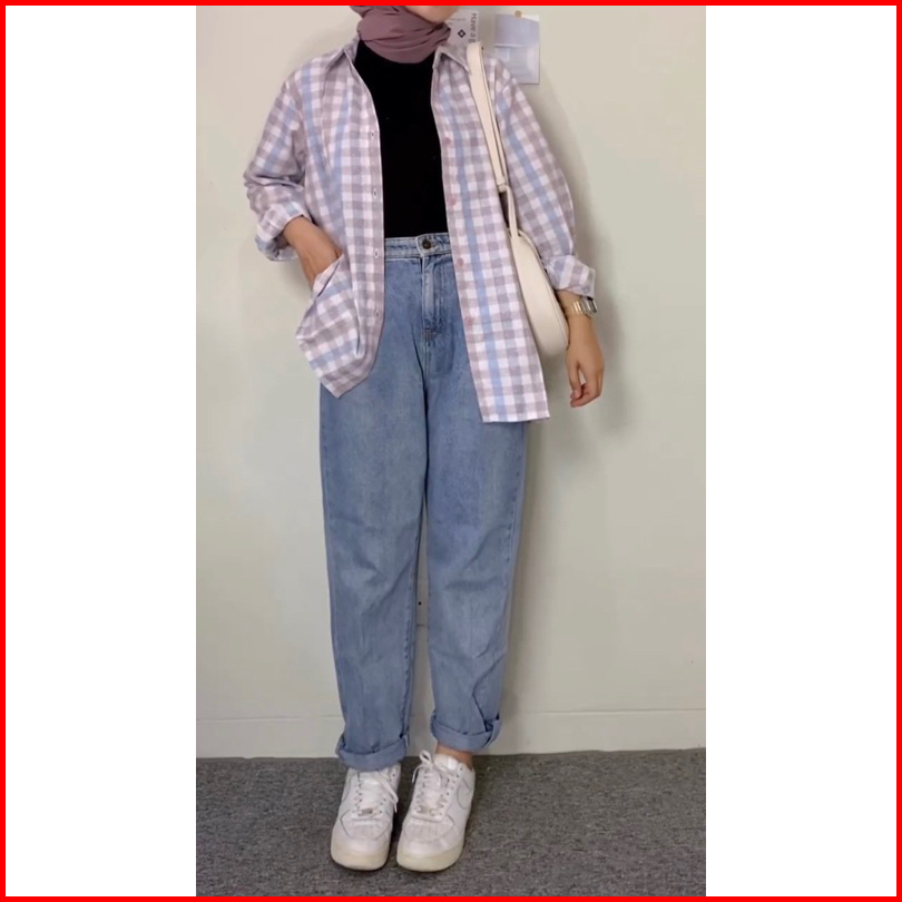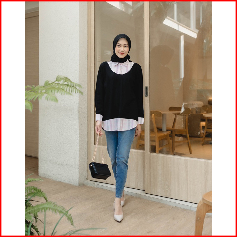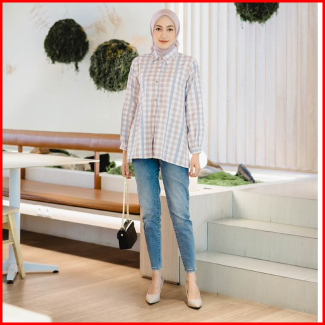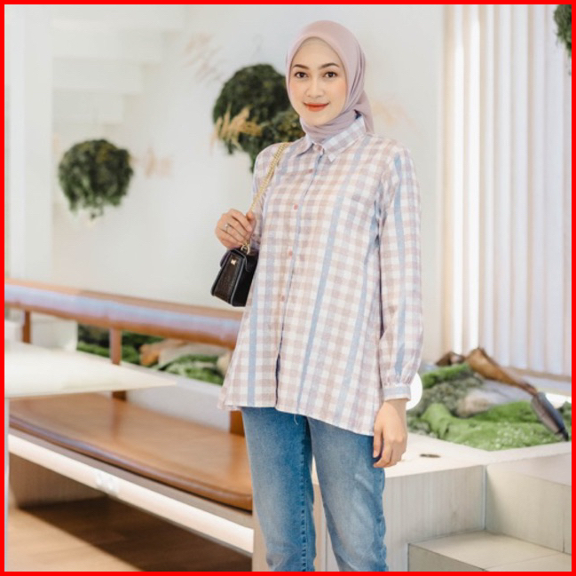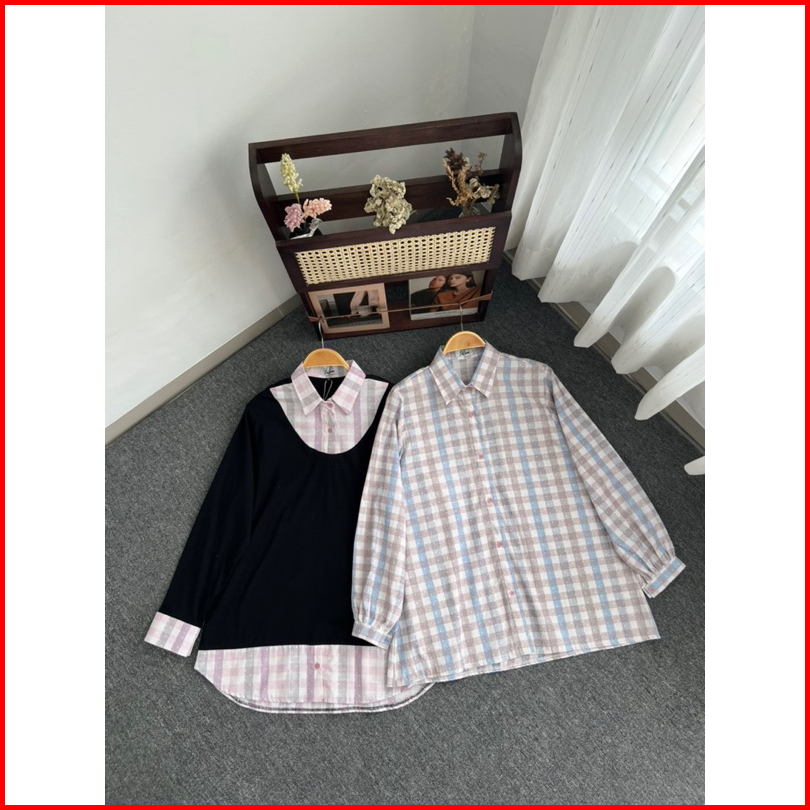 Tatum Duha Top Shirt Kemeja Katun Cewek Wanita Korea Lengan Panjang Kekinian