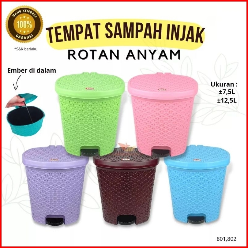Keluargastore Tempat Sampah Injak Rotan Anyam Tong Sampah Kecil Besar 7 5l 12 5l Tong Sampah Ijek Injek Tempat Sampah In