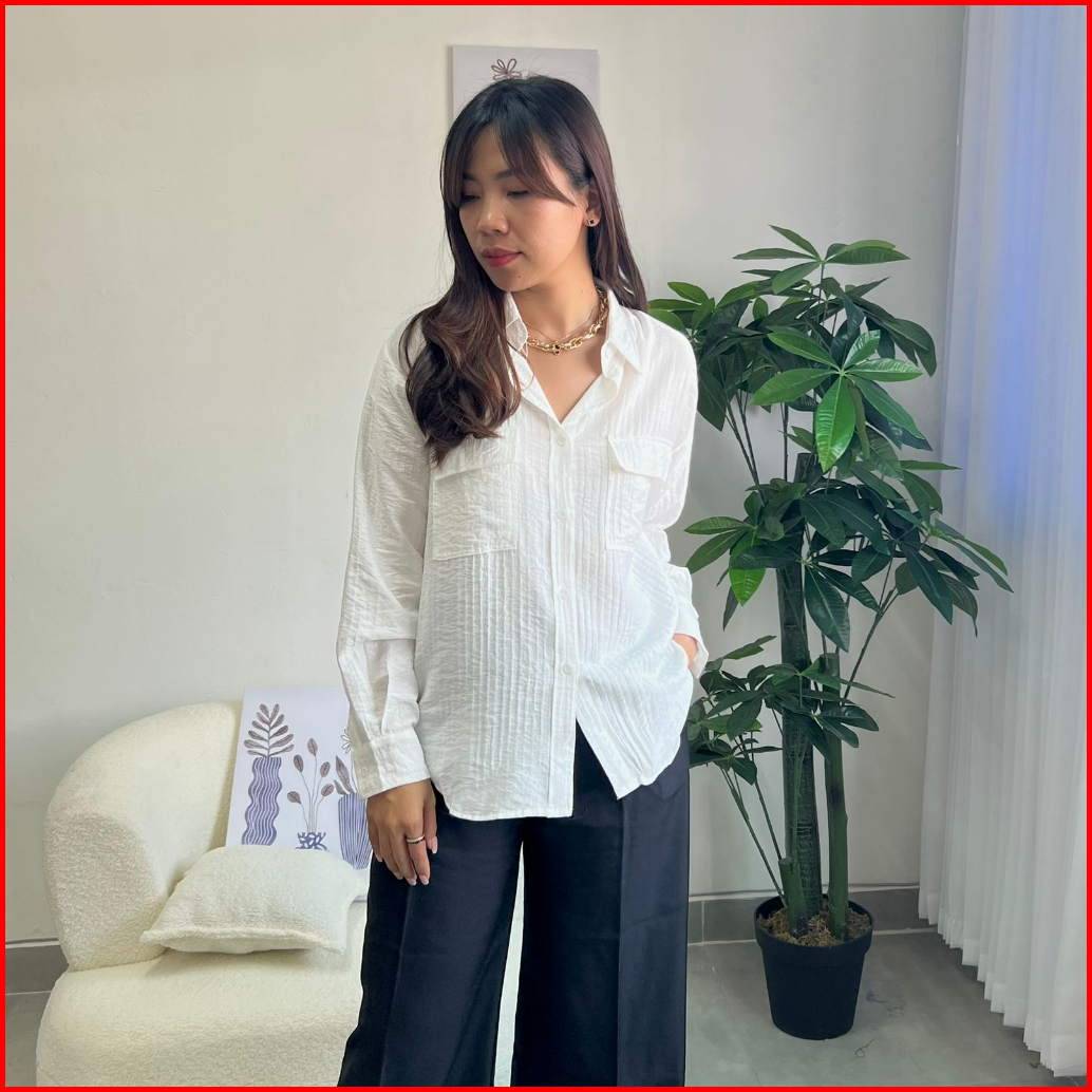 Kemeja Lengan Panjang Wanita Korea Baju Casual Import Blouse Korean Style E.75