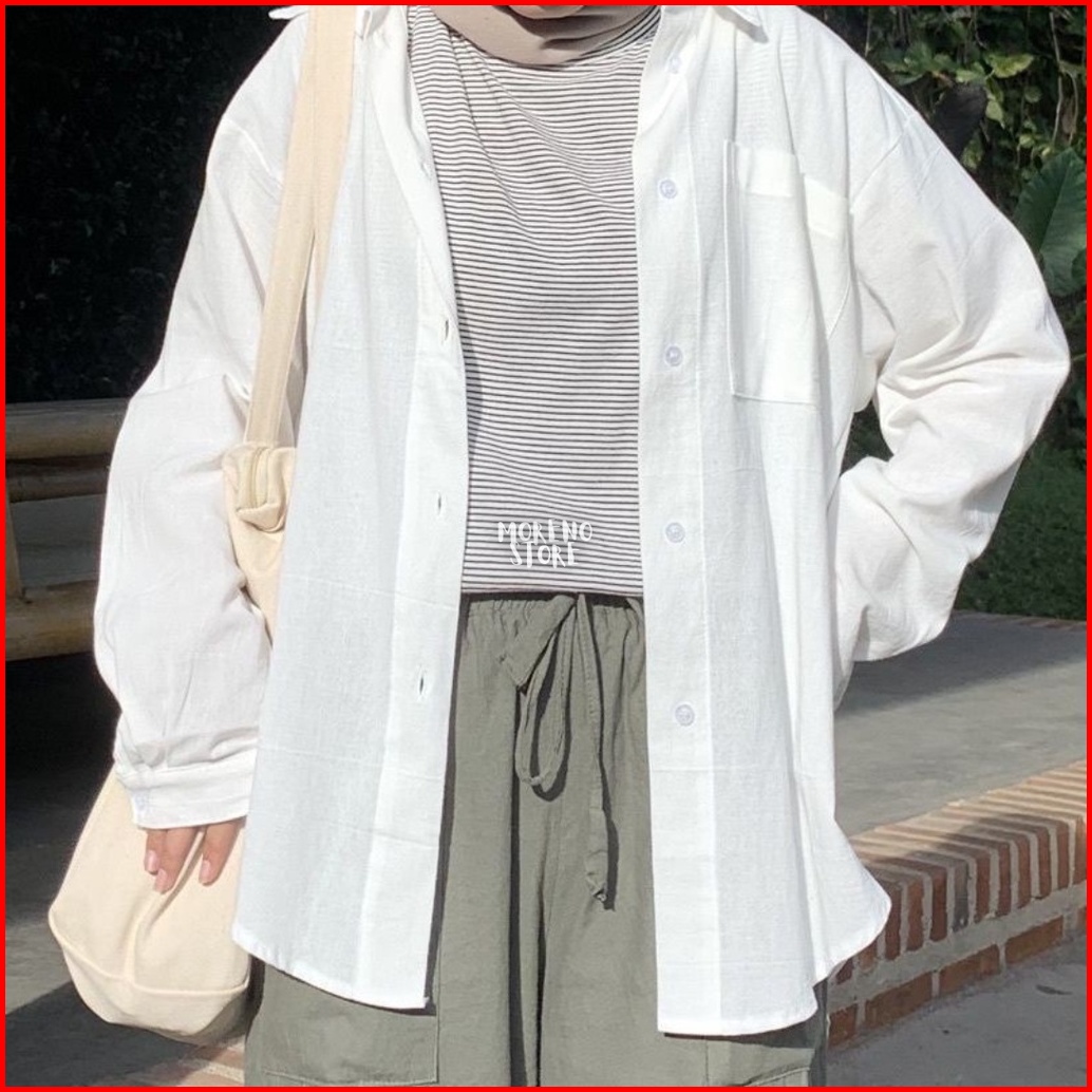Kemeja Wanita Linen Olivia Shirt Oversize Pocket