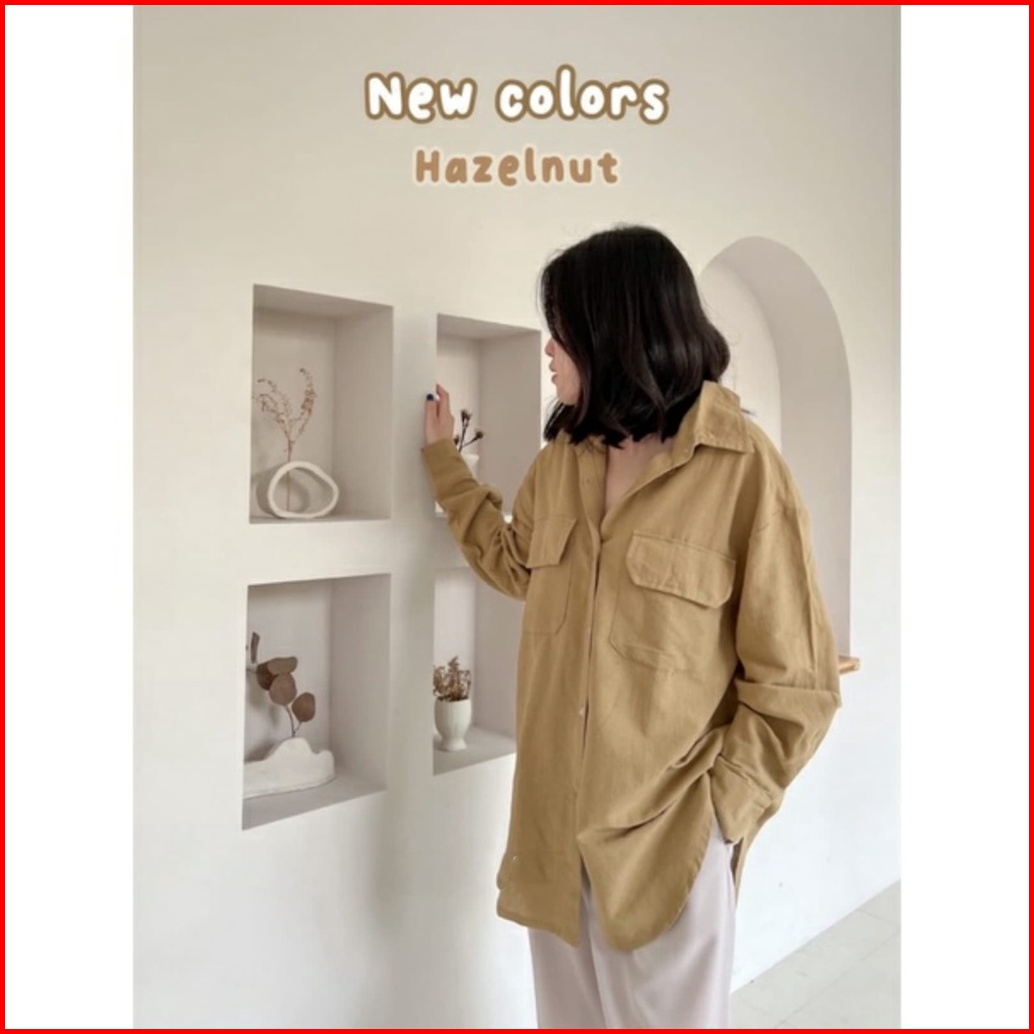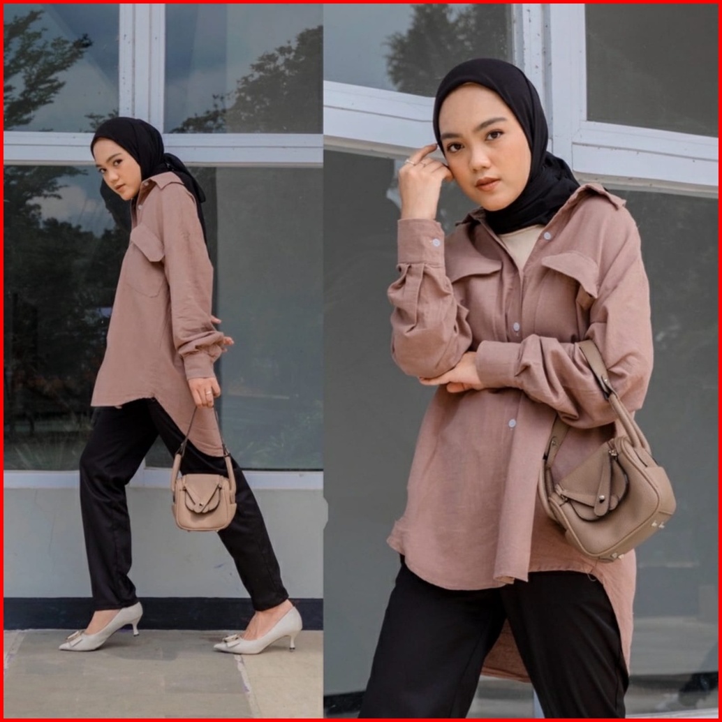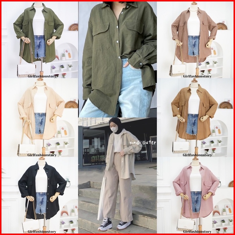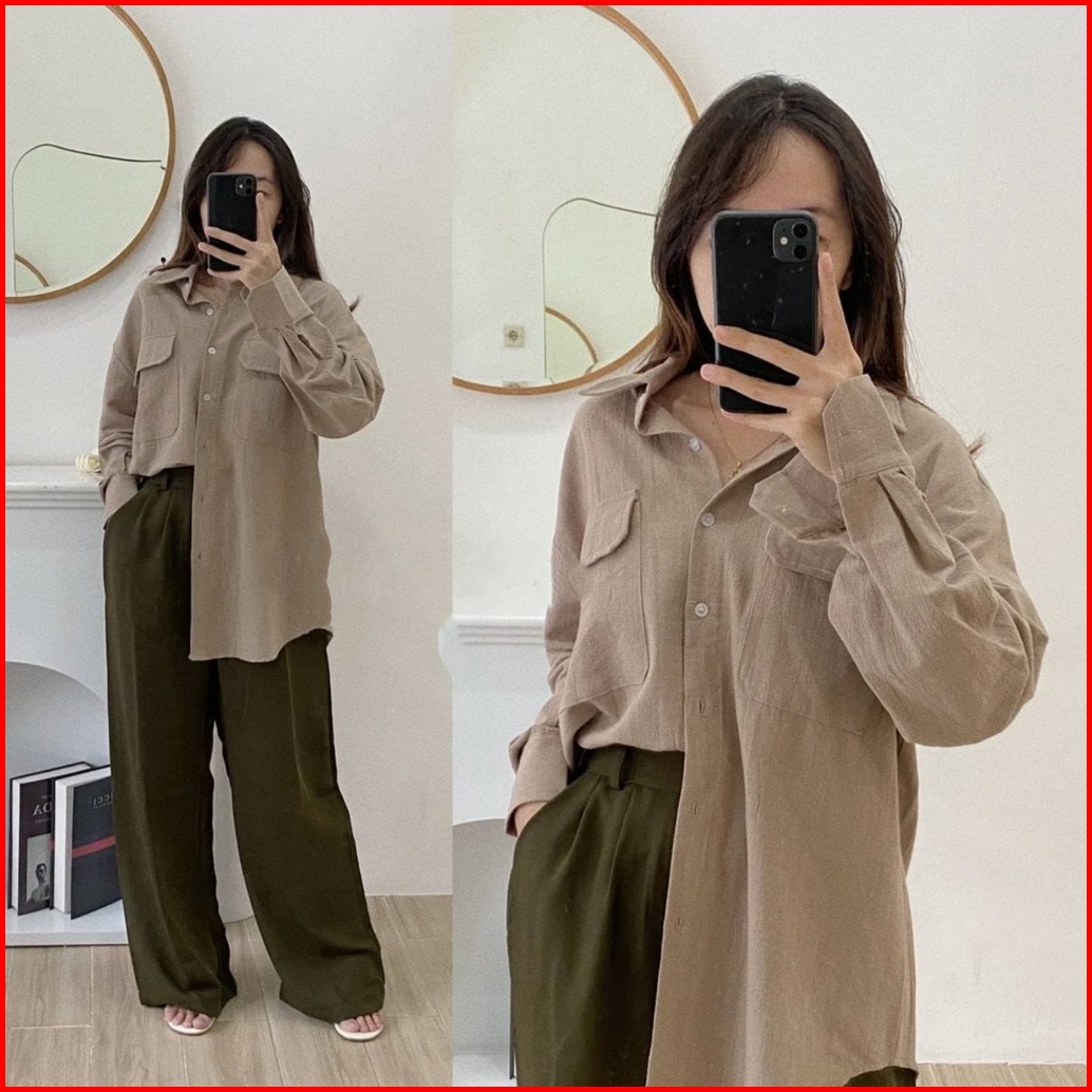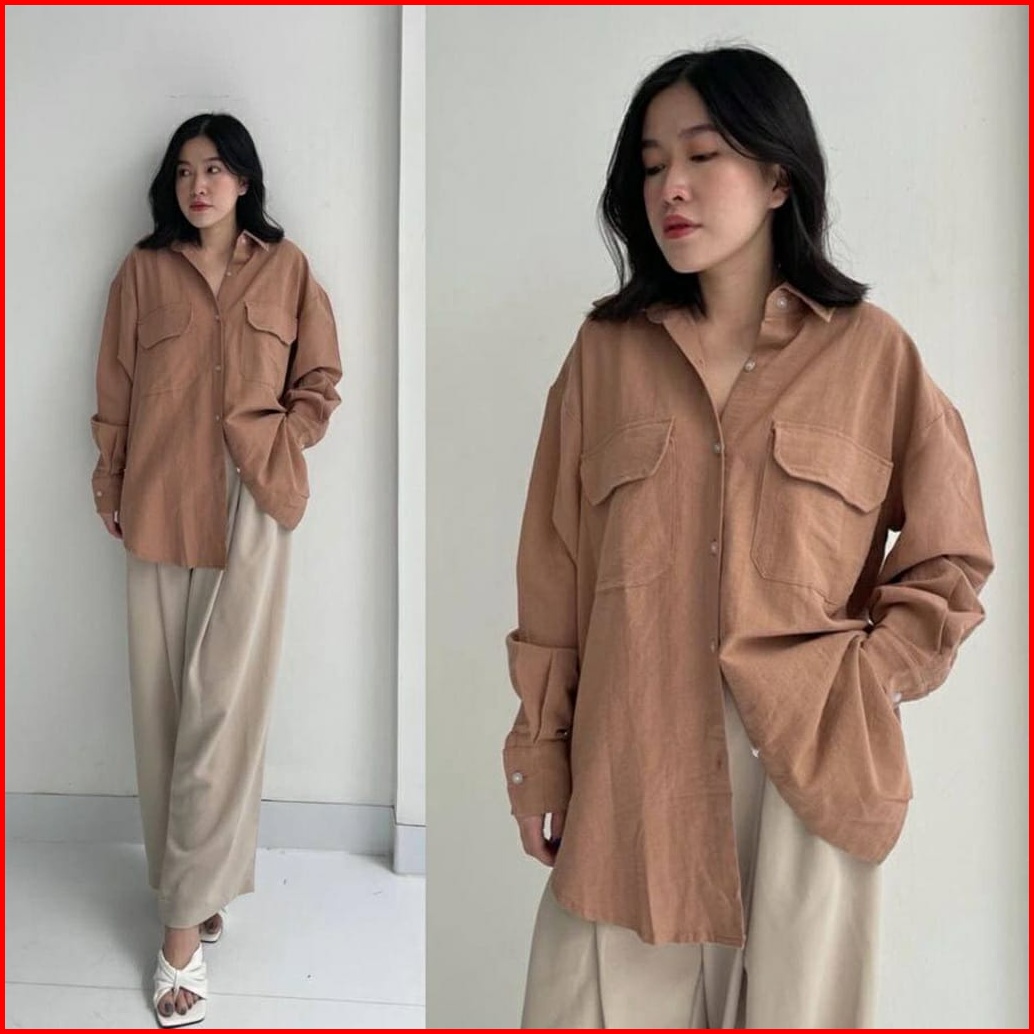Girlfashionstory Original Sp 330 High Quality Nindy Oversize Linen Pocket Shirt Ld 112 Cm R91stok Kmj