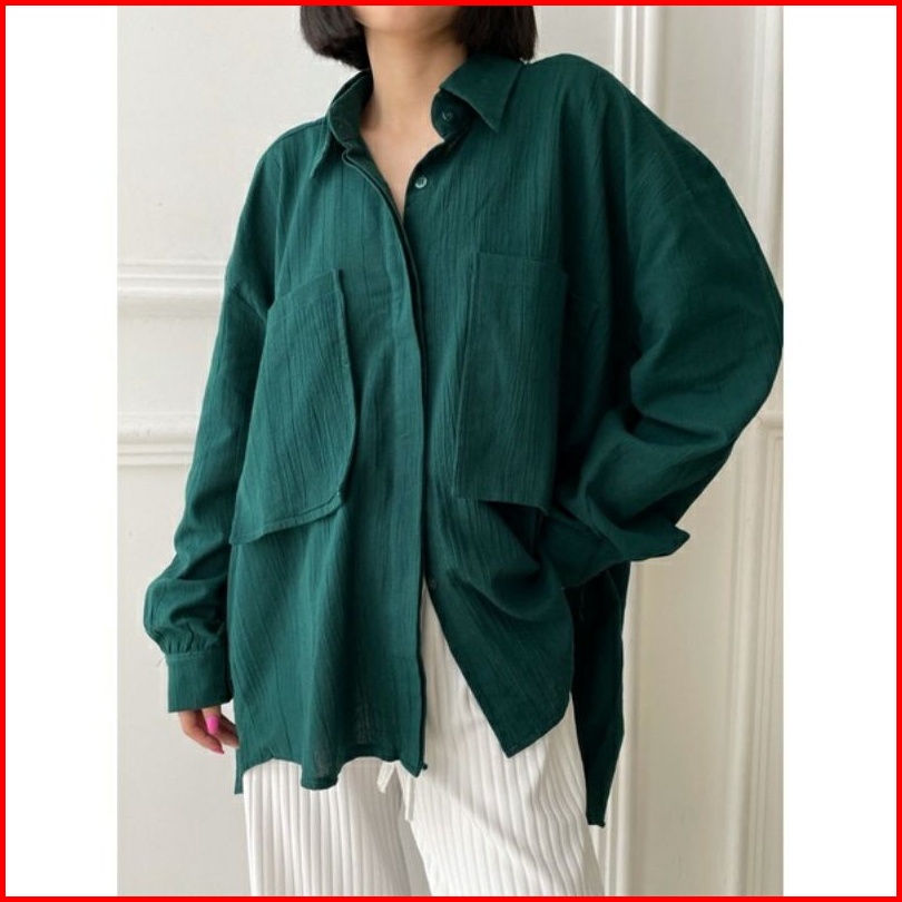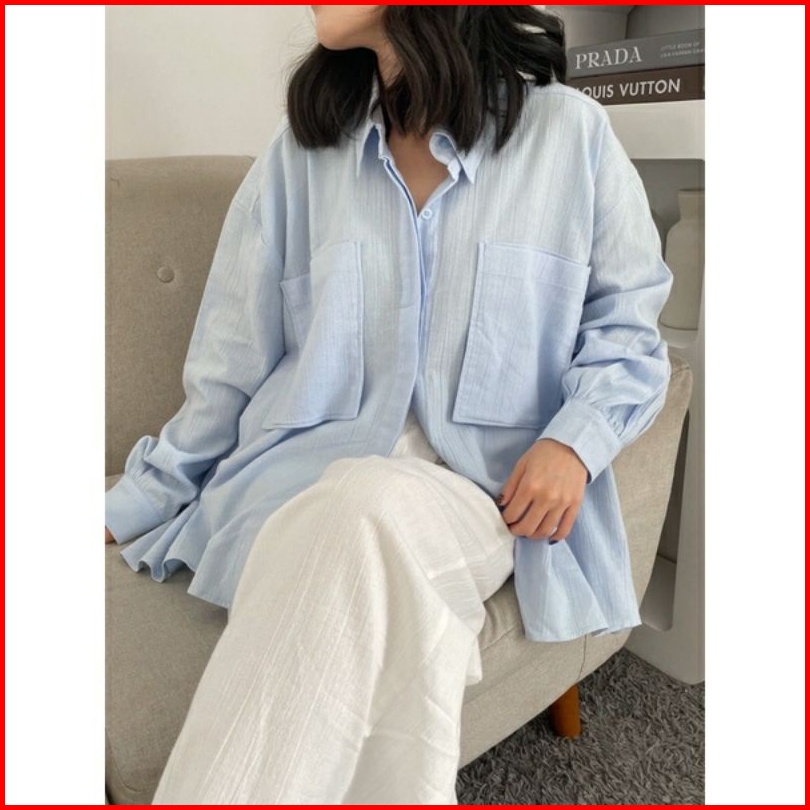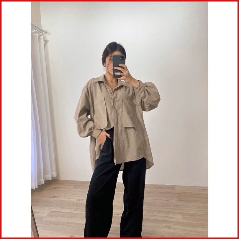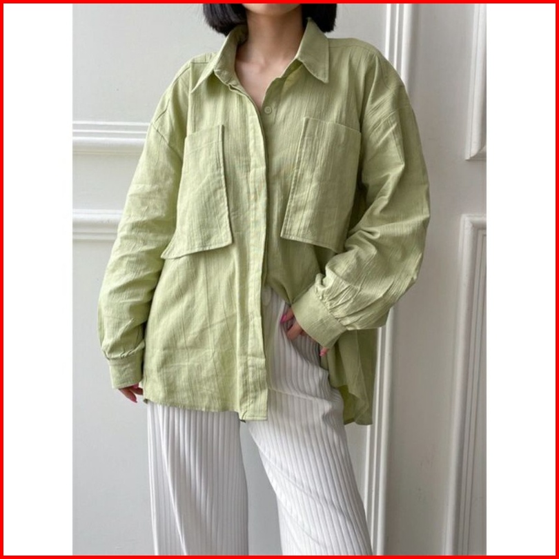 Niki Shirt Kemeja Linen Pocket Kemeja Linen Crinkle Oversize