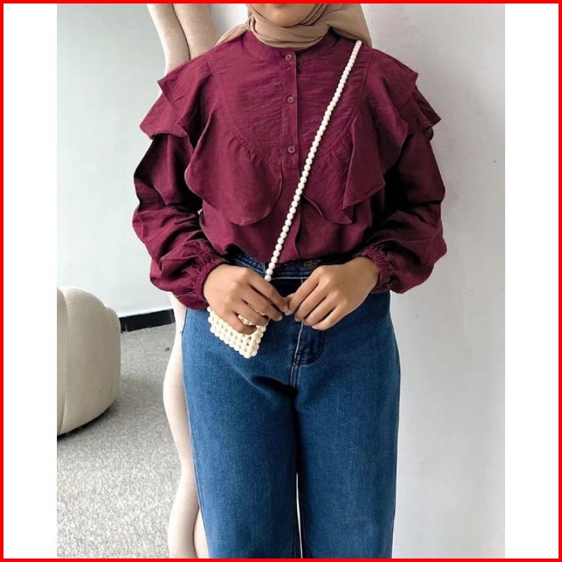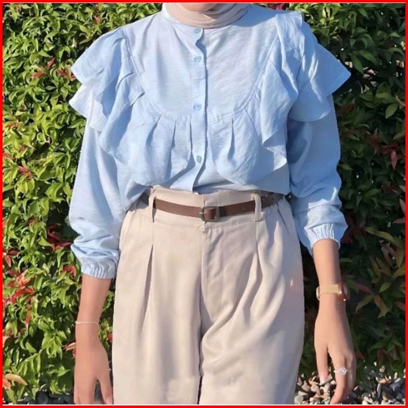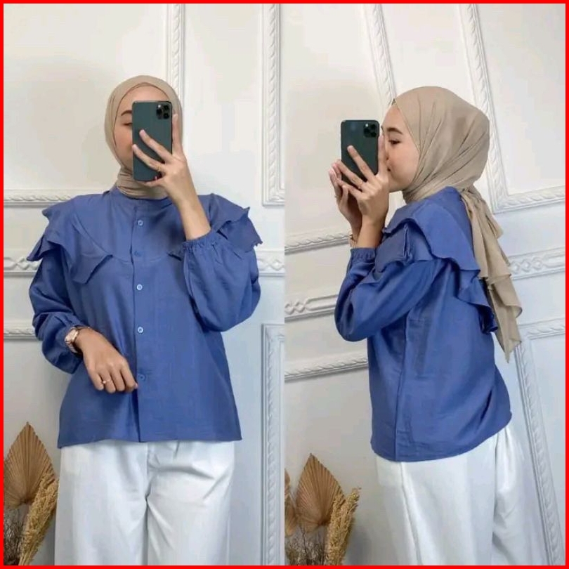 Rafella Blouse Kekinian Polo Linen Premium Kemeja Wanita Terbaru