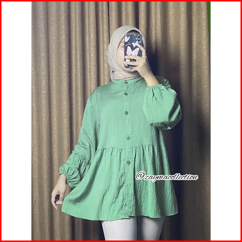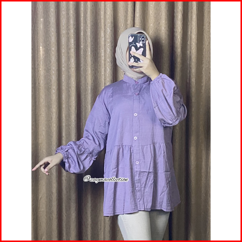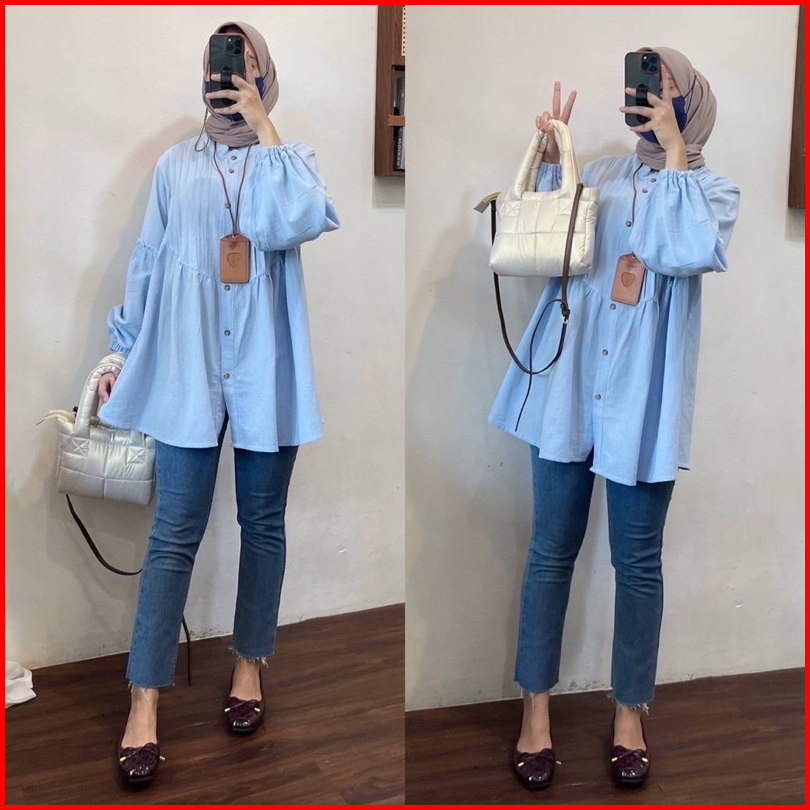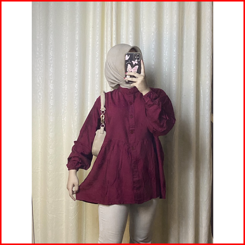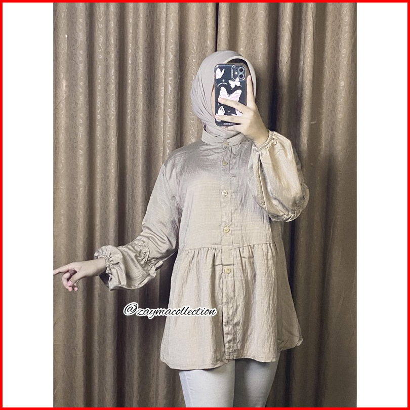 Lamia Top Blouse Semi Tunik Polo Linen Premium Wanita Kekinian
