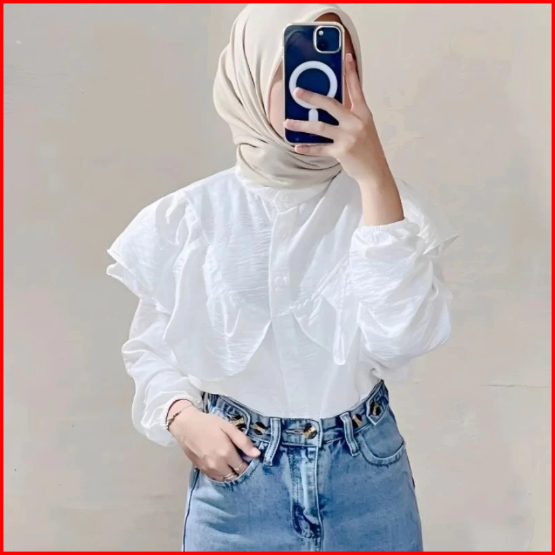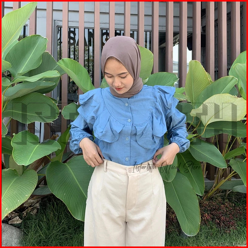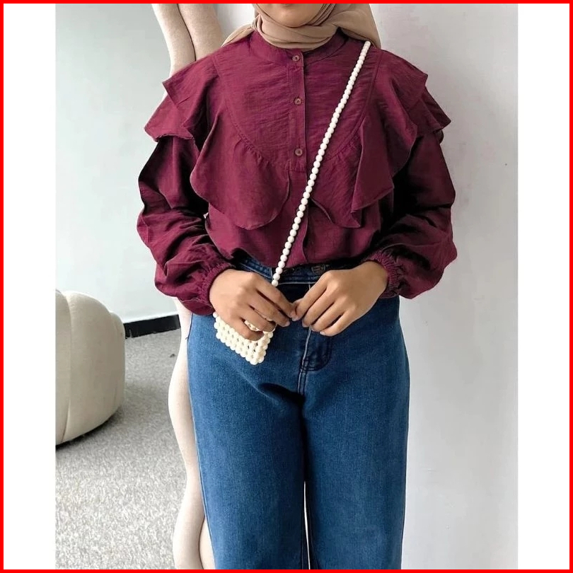 Yure Blouse - Kemeja Wanita Ruffle Polo Linen Rafella Kekinian - Atasan Wanita Rempel