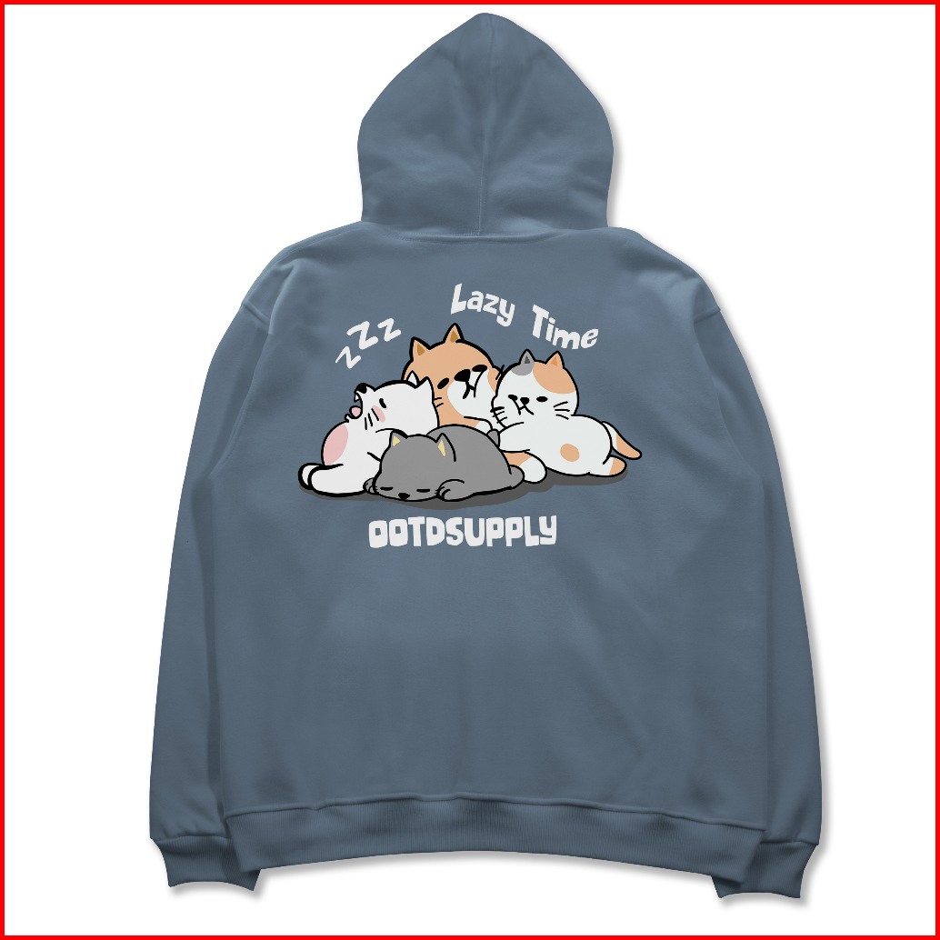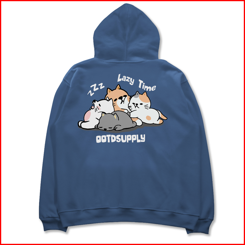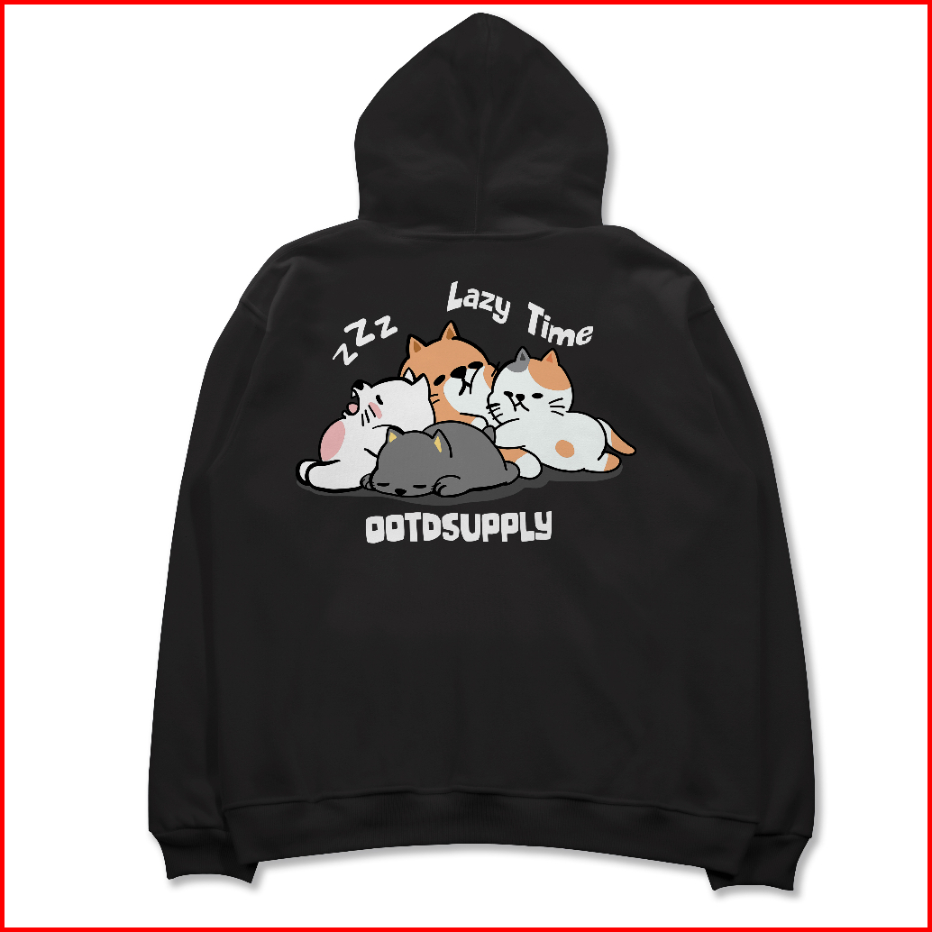 Ootdsupply - Pullover Hoodie Lazy Time Dark Colours Pria Wanita Hd047