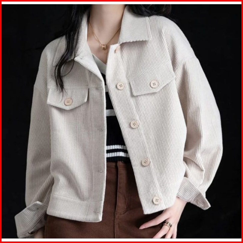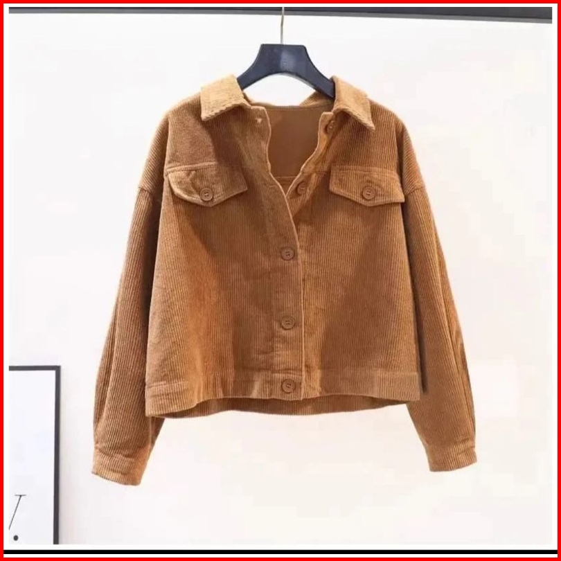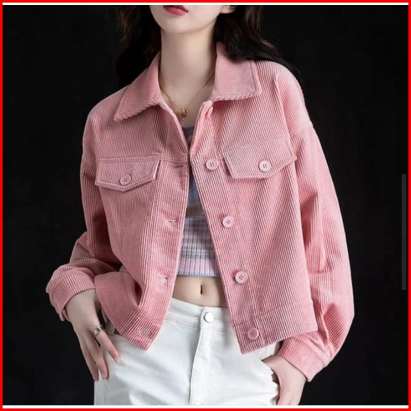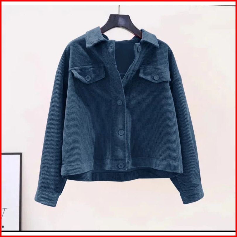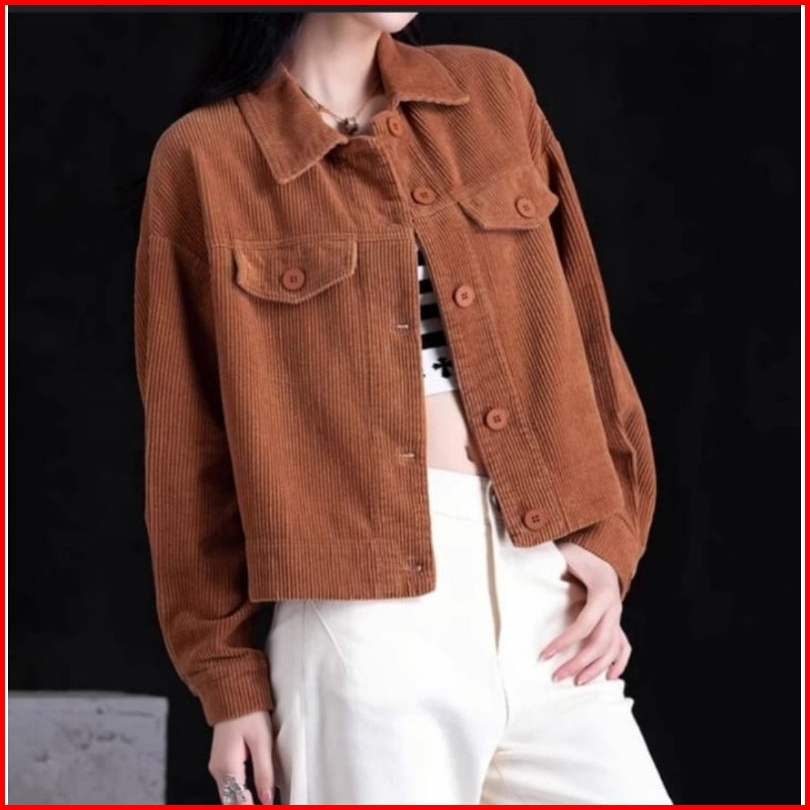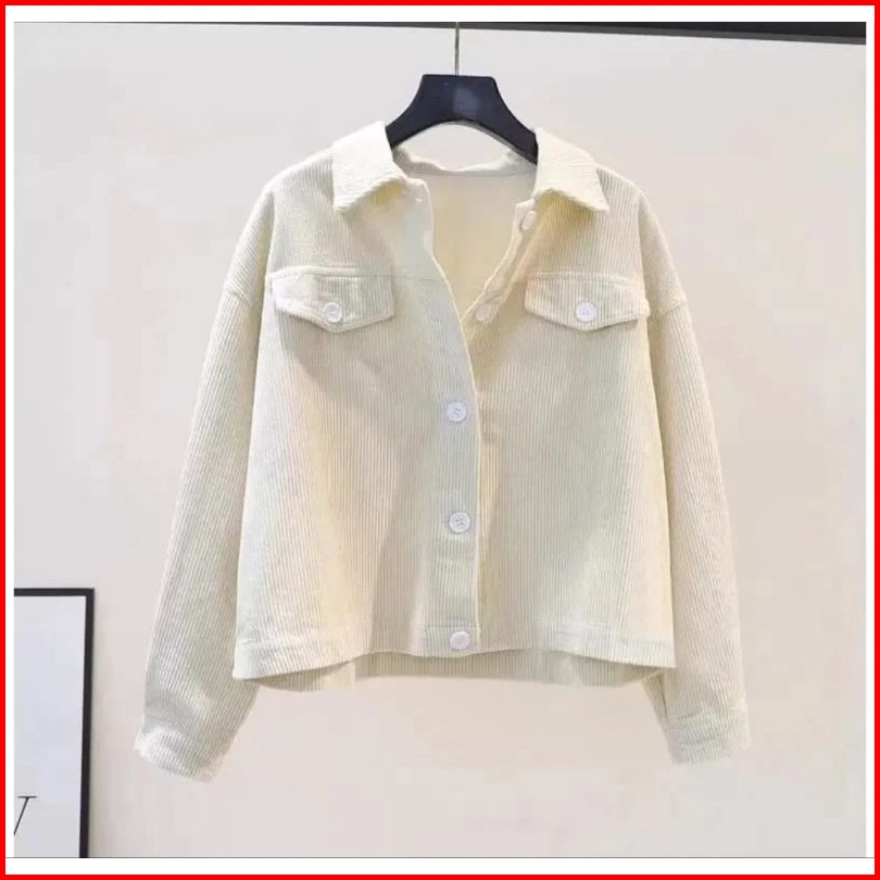 Kameja Crop Basic Corduroy - Atasan Wanita Lengan Panjang