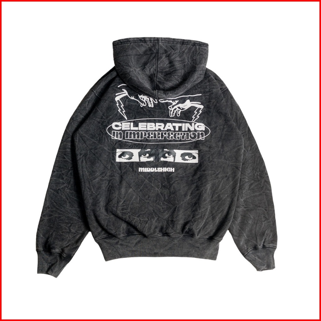 Middlehigh Sweater Pullover Hoodie Washed Black Imperfections