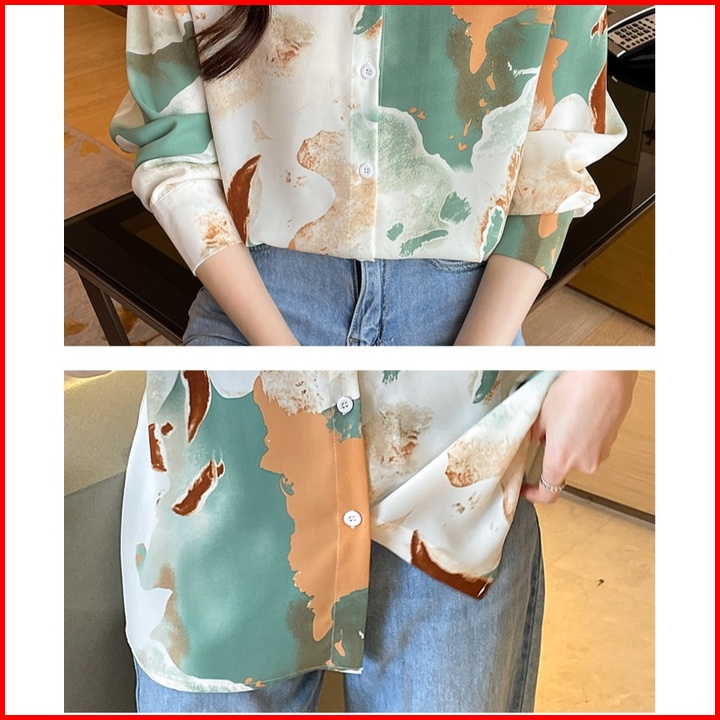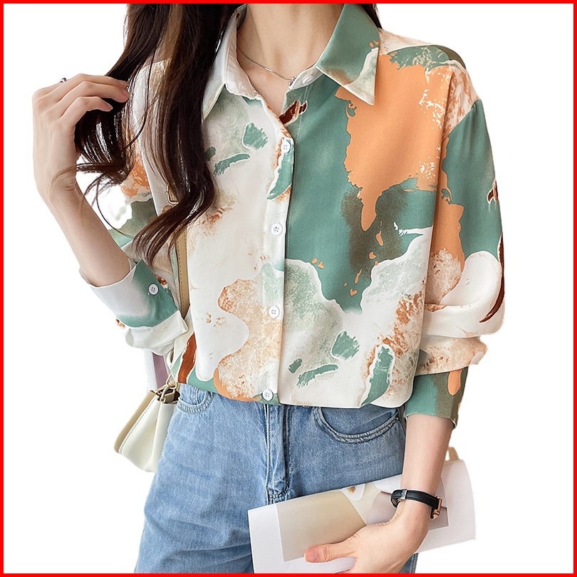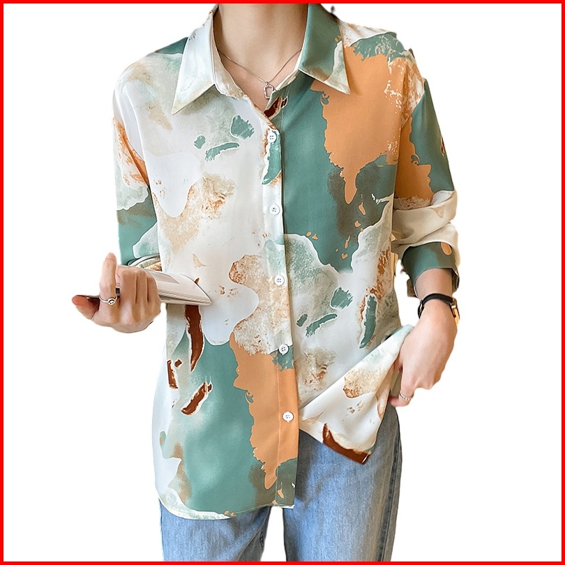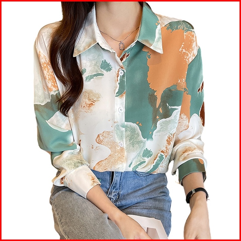 Kain Berkualitas Tinggi Wanita Kemeja Lengan Panjang Hijau Musim Semi Musim Gugur Atasan Street Retro Gaya Korea Yang Tr