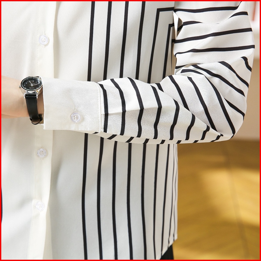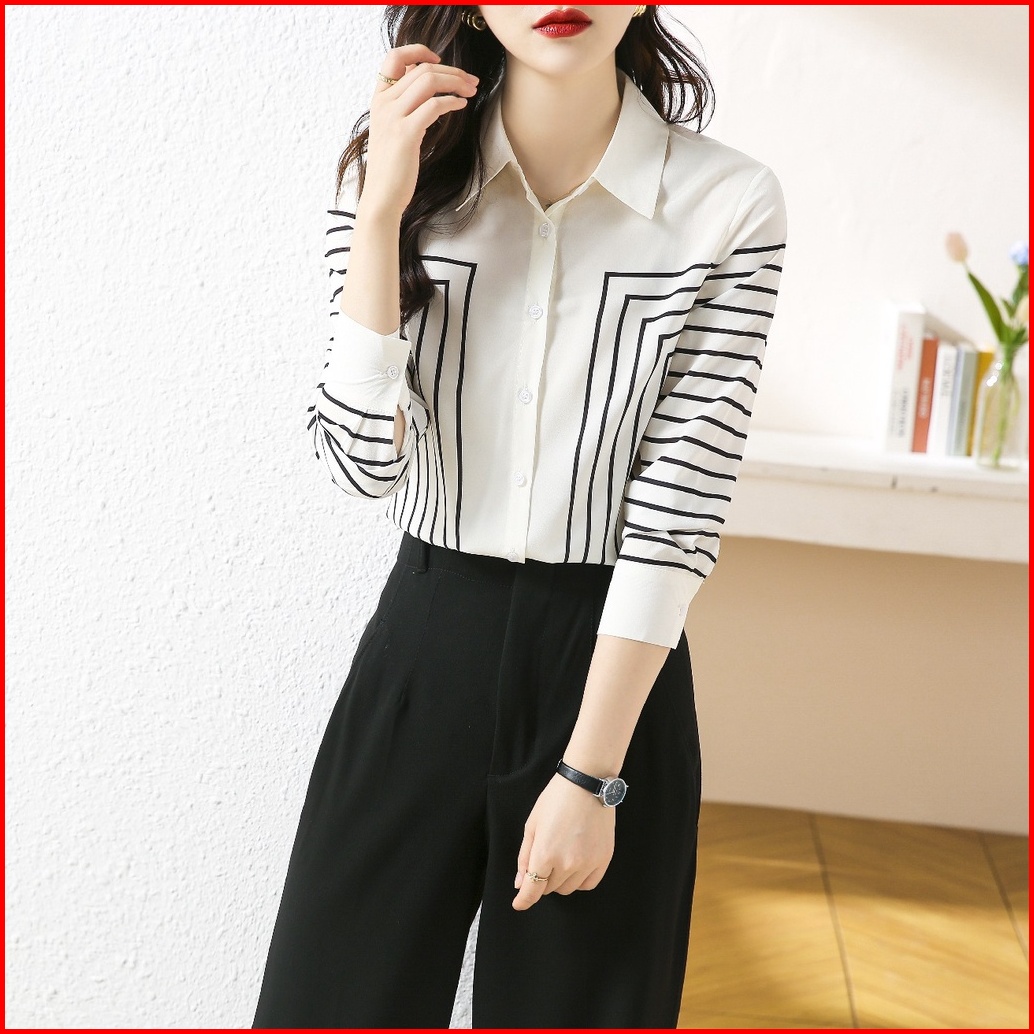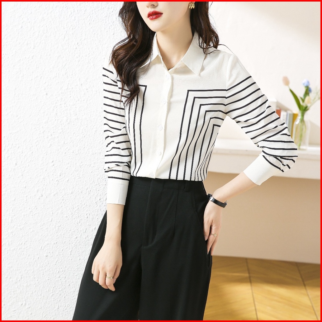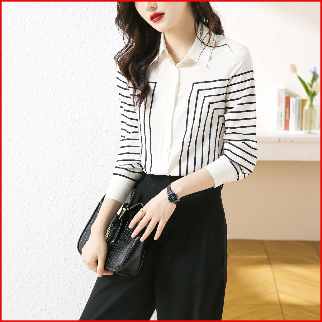 New Fashion Korean White Geometric Pattern Long Sleeve Shirt Women Casual Office Work Tops Import