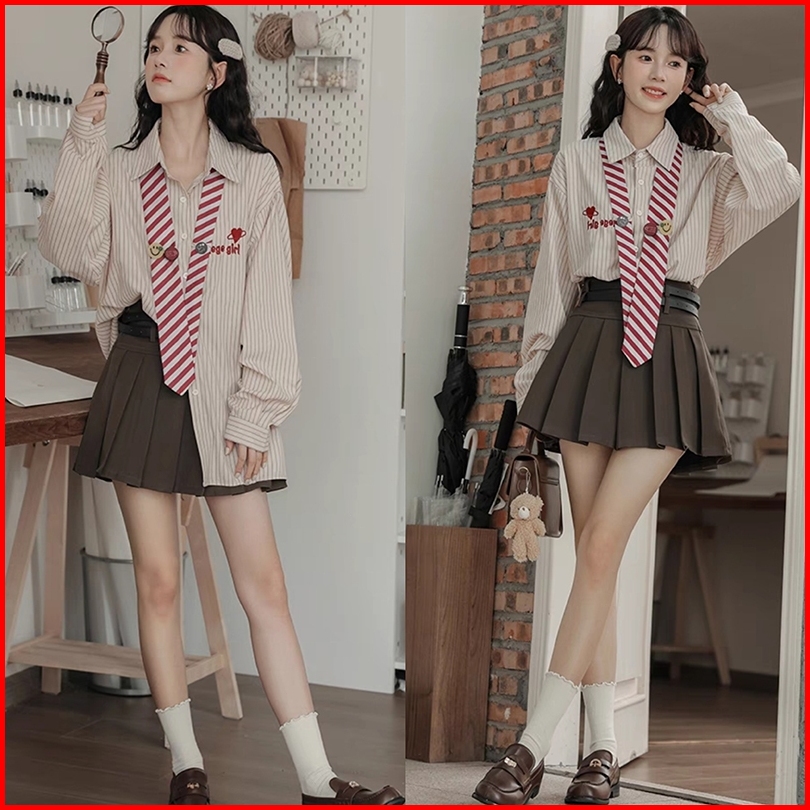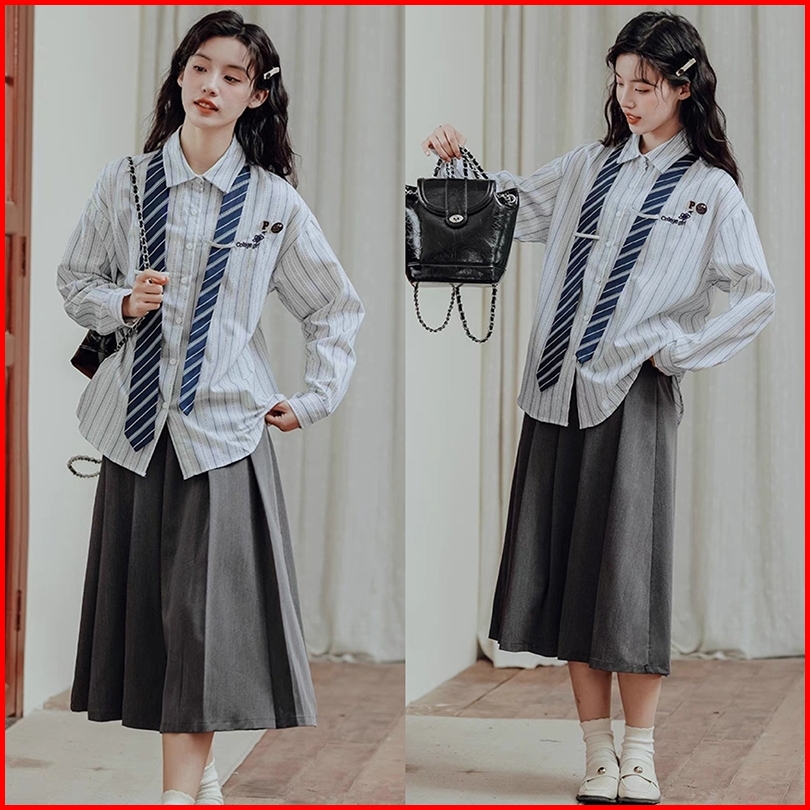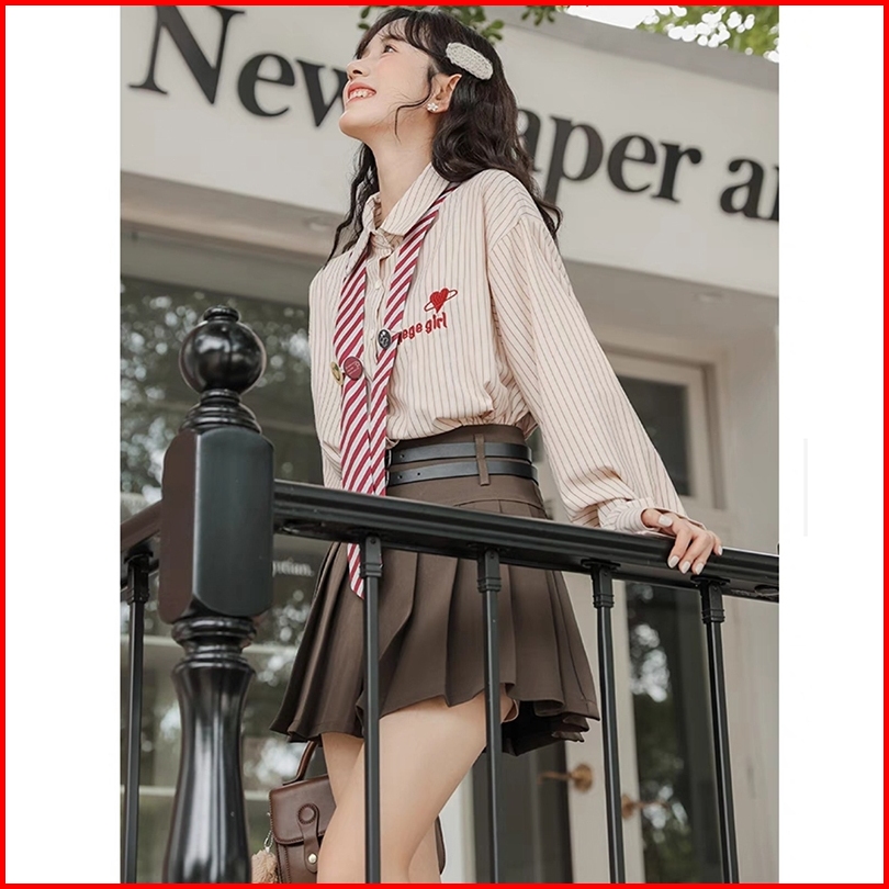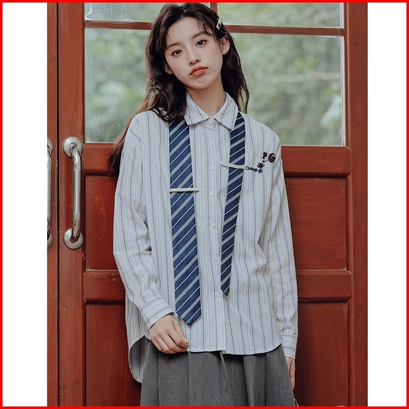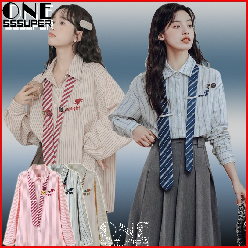 M-4xl Kemeja Bergaris Wanita Kemeja Wanita Gaya Korea Kemeja Merah Muda Kemeja Biru Atasan Kasual Longgar Lengan Panjang