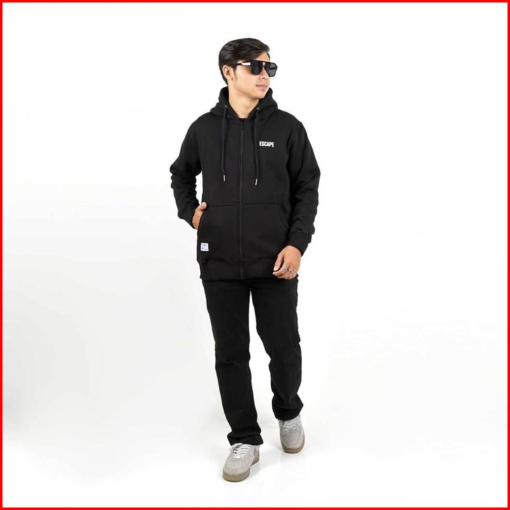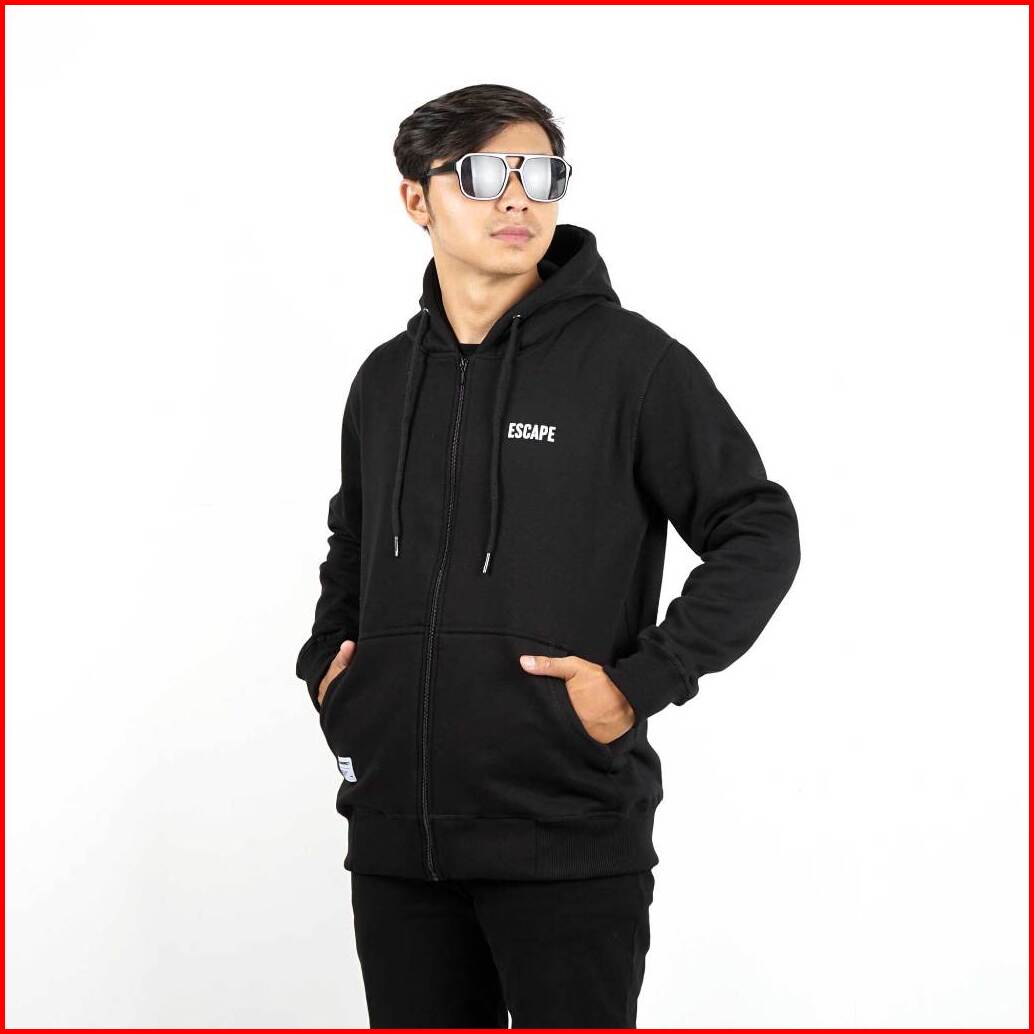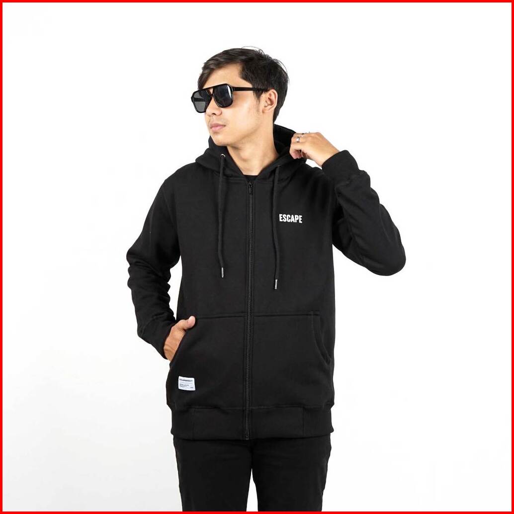 Escaperfect Zipper Hoodie Linea - Black Hoodie Pria